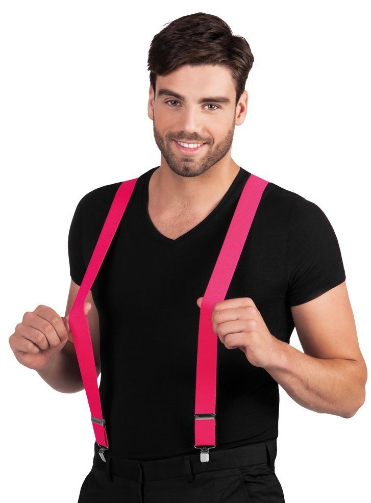 Leuchtend pinke Hosenträger aus elastischem Stoff für Damen und Herren. Verstellbar und mit den obligatorischen Halteklammern für einen festen Sitz ausgestattet!