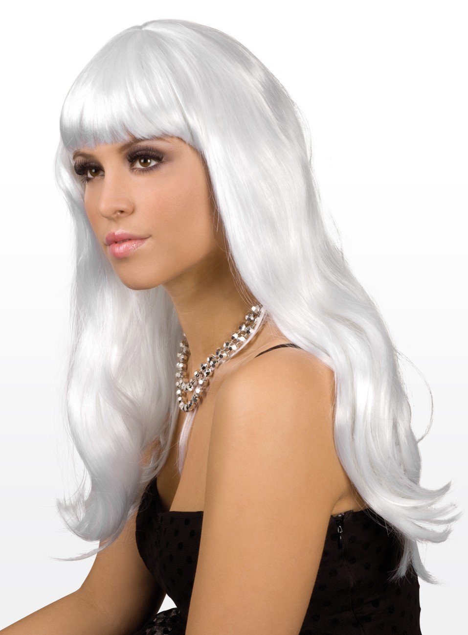 Mit diesem ausgefallenen Look in Schneeweiß werdet Ihr zur Eiskönigin, Himmelsbotin, Disco Queen oder was immer das Herz begehrt! Das mittellange, glatte Haar fällt leicht gewellt über die Schultern und hat vorne einen kessen, langen Pony. Ein elastisches Haarnetz garantiert optimalen Halt und einfache Anpassung an jeden Kopfumfang. Diese toll glänzende Langhaar-Perücke in Weiß krönt Euren Kopf in überirdischem, schönem und eisigem Glanz und verleiht Euch eine geheimnisvolle Aura!