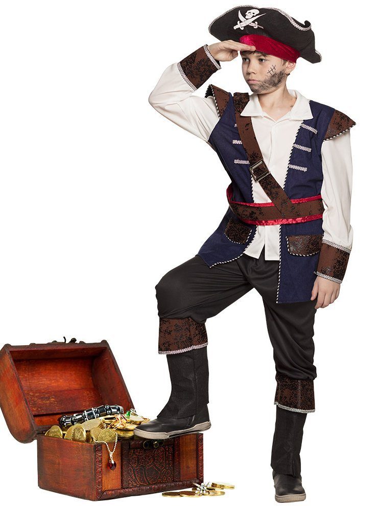 Ausstattung | - Karibikpirat Kinderkostüm vierteilig- mit Hut- mit Hemd- Hose mit angenähten Gamaschen- mit Schultergurt |