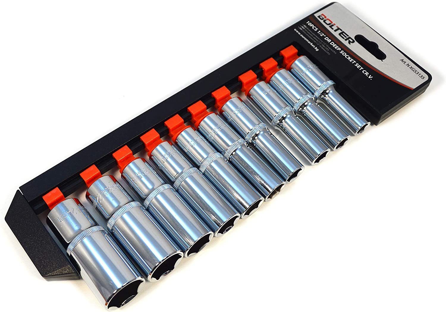 Bolter Bit- und Steckschlüsselset Steckschlüssel Satz lang Nuße 1/2 Zoll 10-tlg Stecknüsse Werkzeug Set, 1-St.