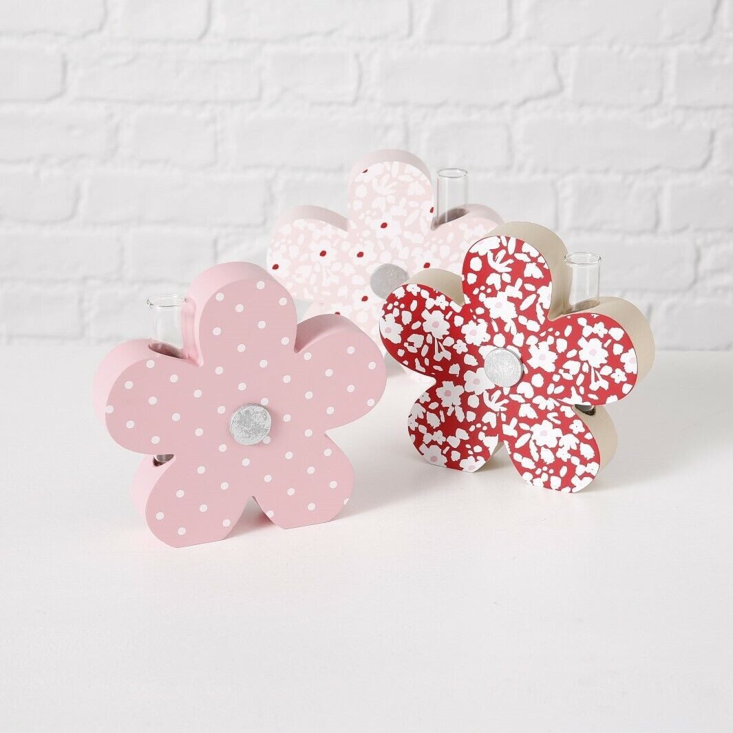 Hübsche Vase in Form einer Blüte aus MDF, durch das Reagenzglas können einzelne Blüten toll in Szene gesetzt werden