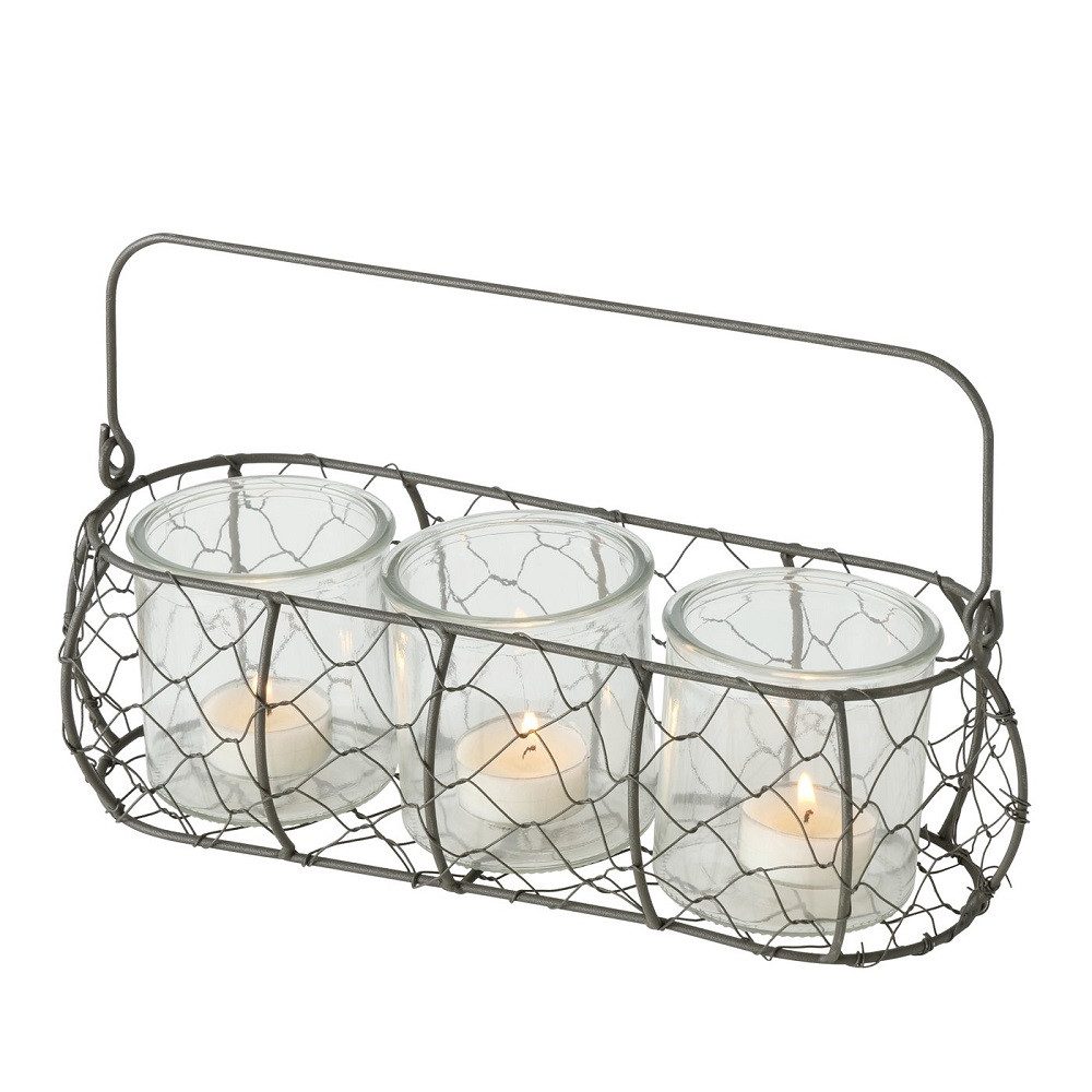 Hübsches Windlicht mit Eisenkorb und Drahtgeflecht und drei Glaseinsätze