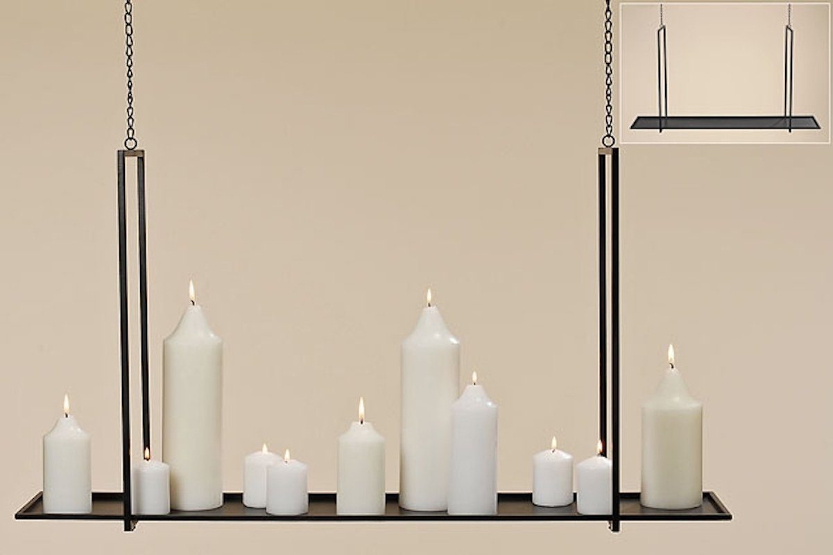 Der Deckenhänger ist aus Metall gefertigt und hat eine Dekorierfläche von 100 x 27 cm. Ziemlich viel Platz für Kerzen, Teelichthalter und jahreszeitlicher Dekoration wie Osterhasen oder Weihnachtssterne.
