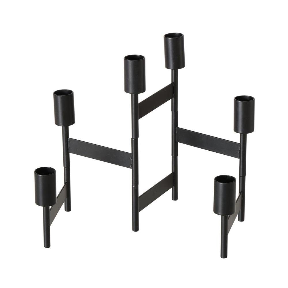 Der BOLTZE Kerzenleuchter Kalika vereint klassische Eleganz und zeitlose Schönheit in einem exquisiten Design. Mit einer Höhe von 22 cm, einer Длина von 55 cm und einer Breite von 3 cm ist dieser Leuchter aus lackiertem Eisen gefertigt, was ihm eine robuste Struktur verleiht. Die matte schwarze Oberfläche unterstreicht seinen edlen Charme und passt perfekt zu einem klassisch-eleganten Wohnstil. Die Sonderform und das einfache, einfarbige Design machen ihn zu einem Blickfang in jedem Raum. Dieser freistehende Kerzenleuchter eignet sich ideal für den Innenbereich und bietet Platz für bis zu 6 Stabkerzen. Ob auf dem Esstisch oder als dekoratives Element im Wohnzimmer – der BOLTZE Kerzenleuchter Kalika verleiht Ihrem Zuhause eine zeitlos elegante Atmosphäre. Erleben Sie den Zauber von Kerzenlicht in seiner schönsten Form!