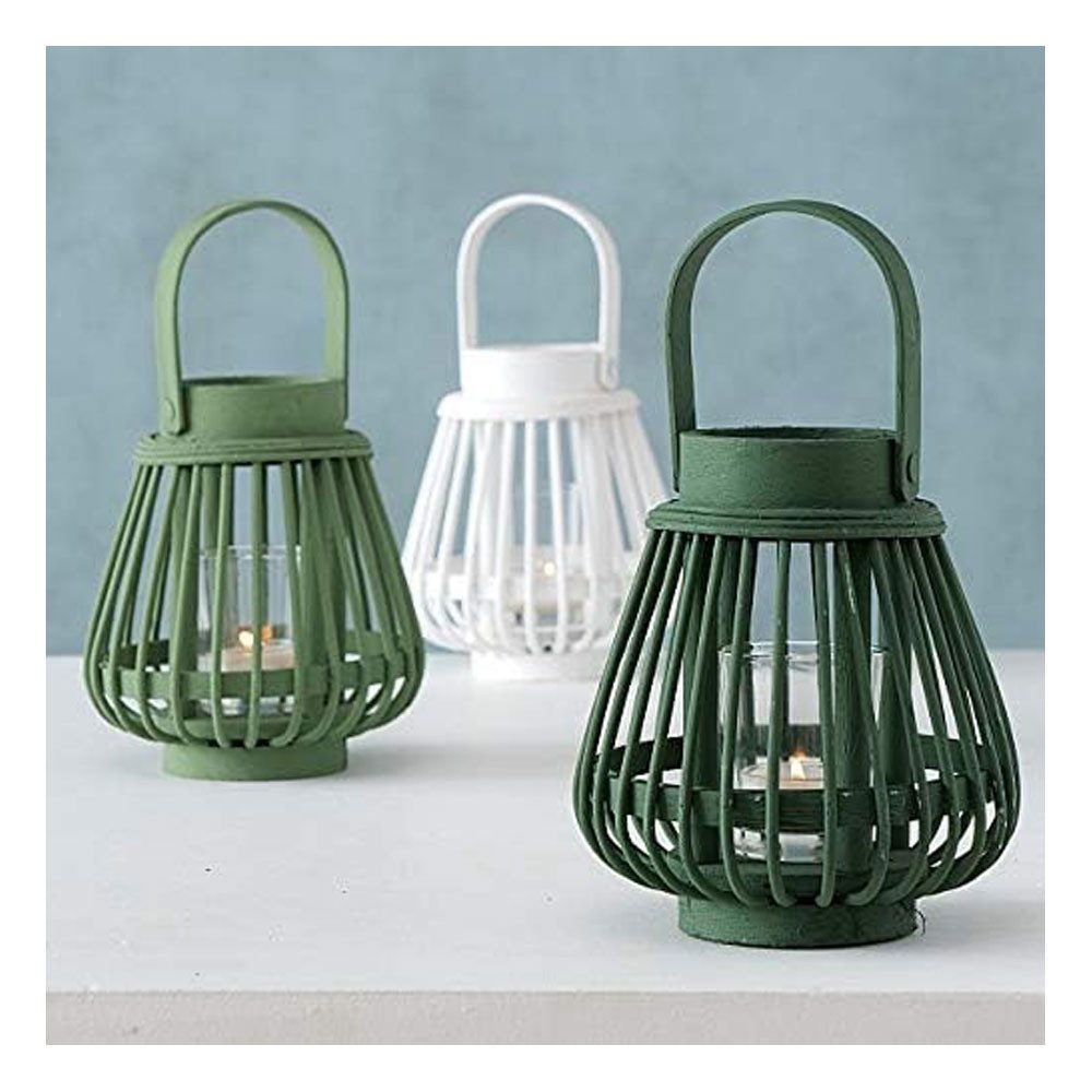 Dekoratives 3er-Set Bambus-Laternen in den Farben hellgrün, dunkelgrün und weiß