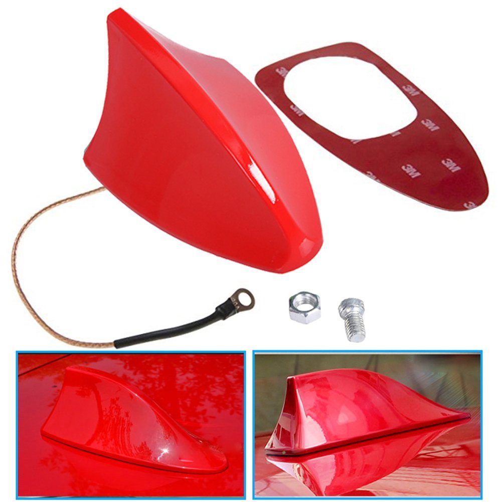 A56C Universal Auto Shark Hai Antenne – selbstklebende Dachantenne in Haifischform für AM/FM Radio – rot, geeignet für viele Fahrzeugtypen