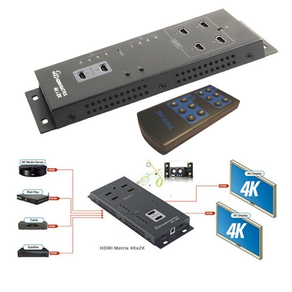 C07D HDMI Matrix Switch 4x2 4K@30Hz Umschalter Splitter Audio Video mit Fernbedienung