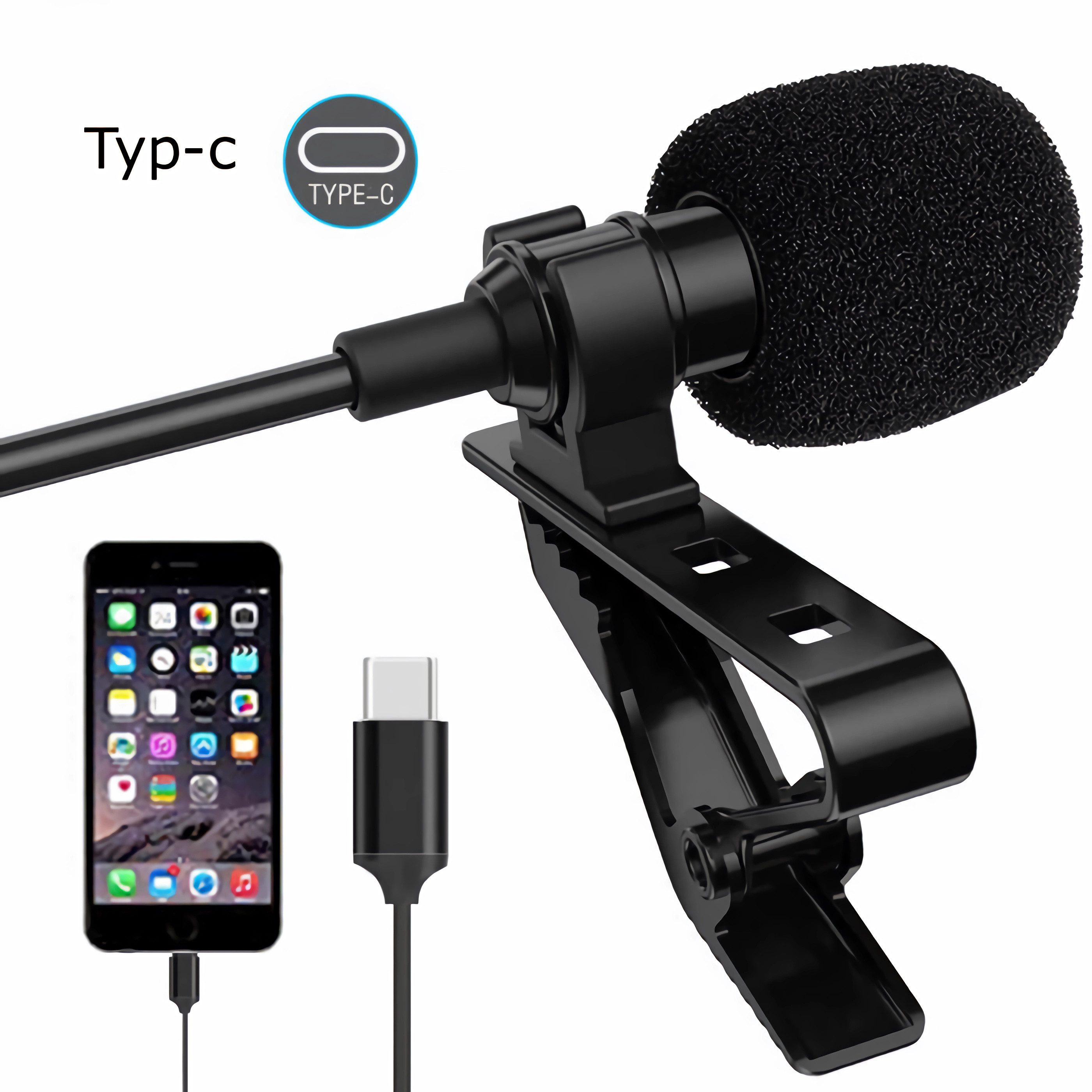 TOP! 150cm Omnidirektionales Lavalier Aufsteckmikrofon für Typ-C Smartphone Tablett PC oder Laptop