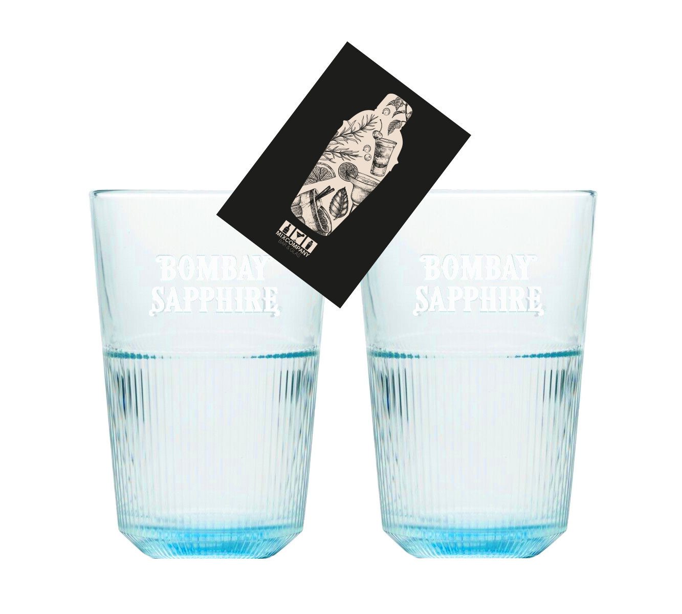 Bombay Sapphire Gin 2x Longdrink Glas 2er Set Gläser in blau mit Relief