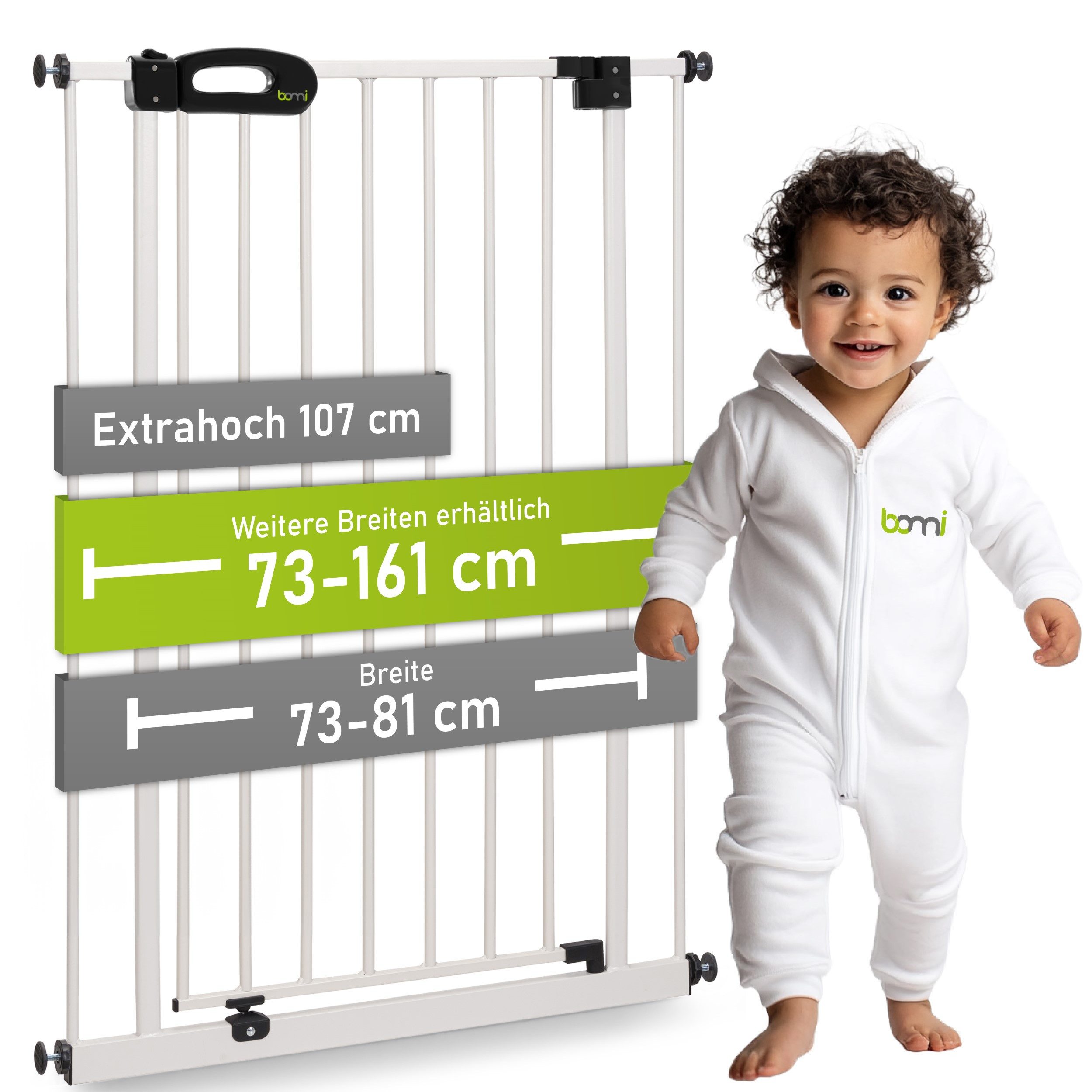Maximale Sicherheit für Ihr Kind oder Haustier - Das BOMI "Merle Extrahoch" Kinder Schutzgitter ist ein nach DIN EN 1930:2012 geprüftes, selbstschließendes Tür- und Treppenschutzgitter, dem Sie vertrauen können.