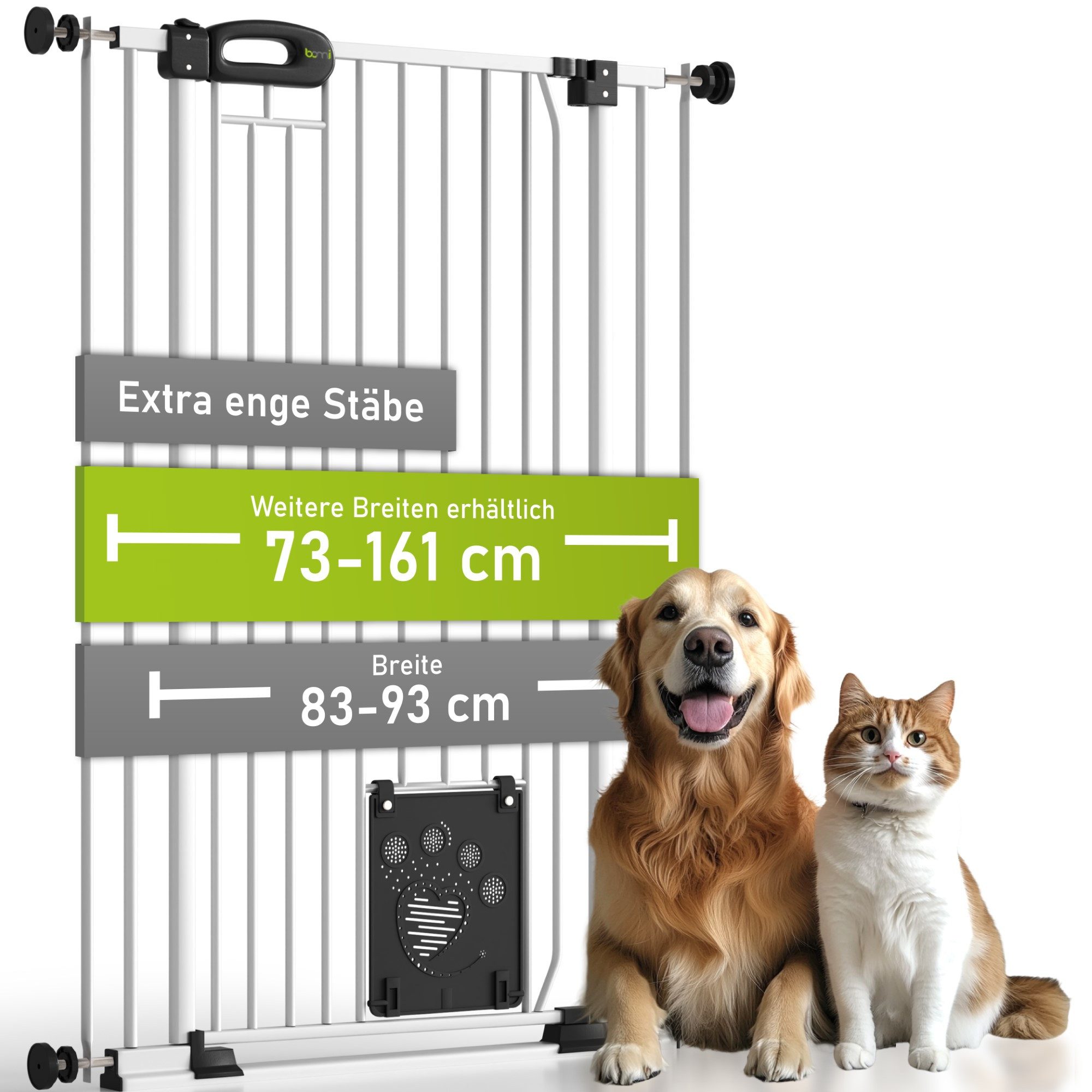 Maximale Sicherheit für Ihre Vierbeiner – ohne Bohren, ohne Kompromisse: Das hochwertige Tierschutzgitter „Merle“ von BOMI ist die ideale Lösung für Haustierbesitzer, die Komfort, Qualität und Sicherheit vereinen möchten. Dank der stufenlos verstellbaren Breite von 73–161 cm lässt sich das Absperrgitter flexibel in Türrahmen oder Treppenaufgänge integrieren – ganz ohne Bohren. Alternativ ist auch eine feste Verschraubung möglich. Die Extra-Höhe von 107 cm und die besonders engen Strebenabstände von nur 4 cm bieten optimalen Schutz, selbst für kleinere Tiere.