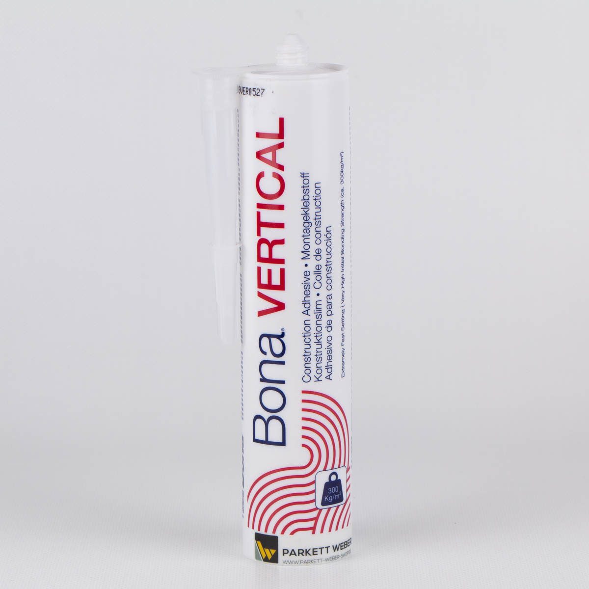 Bona Vertical ist ein elastischer 1-Komponenten Silan-modifizierter Montageklebstoff mit extrem hoher Anfangshaftung und schneller Abbindegeschwindigkeit. Der Montageklebstoff kann dabei auf eine Vielzahl von Substraten und Materialien wie Holz, mineralische Putze, Metall uvm. aufgetragen werden. Er ist zudem für eine Vielzahl von Verklebungen, u. a. auch von Kunststoffen geeignet. Bona Vertical ist daher speziell für Ausbesserungsarbeiten und das Verkleben von Fußleisten, Wandleisten und Treppenstufen geeignet. Durch Aufsprühen geringer Mengen von Wasser auf die zu beklebende Fläche (Unterböden, Wände etc.), oder den aufgetragenen Klebstoff kann der Abbindevorgang weiter beschleunigt werden. Eine Grundierung ist i. d. R. nicht notwendig.