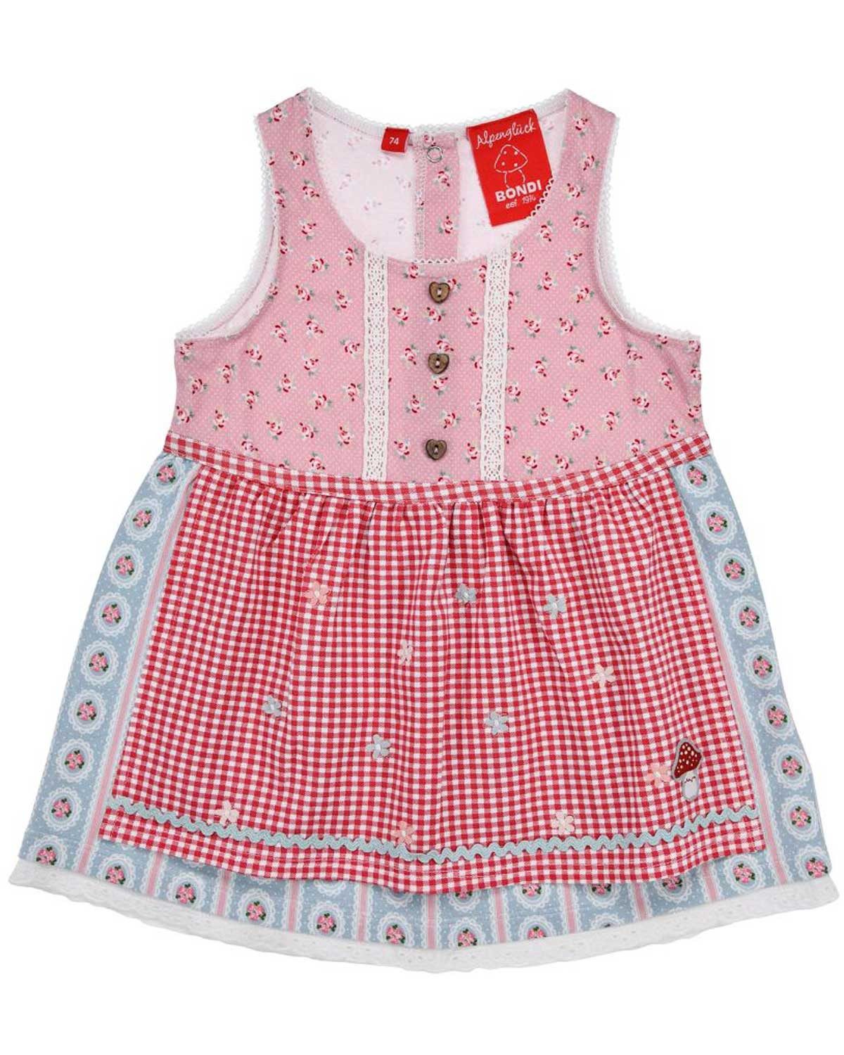 • Deutscher Hersteller: BONDI Kidswear • Lieferumfang: Dirndl • zauberhafter Mustermix • Trachtenkleid mit liebevollen Details • Druckknopfverschluss Entdecken Sie das zauberhafte Baby Mädchen Dirndl von BONDI Kidswear - ein Traum in Rosa und Hellblau. Das Oberteil ist mit einem zauberhaften Röschen Muster auf rosa Stoff designt, während der Rock in Hellblau gehalten ist und ebenfalls ein florales Muster hat. Die rot weiß karierte Schürze verleiht dem Kinderkleid einen trachtigen Charakter und die weiße Borte und die Herzknöpfe runden das ärmellose Trachtenkleid perfekt ab. Geschlossen wird das Dirndl auf der Rückseite mit Druckknöpfen, wodurch das An- und Ausziehen zum Kinderspiel wird. Mit diesem Trachtenkleid wird Ihre kleine Prinzessin zum Hingucker zu Oktoberfest, Kirchweih und andere festliche Anlässe.