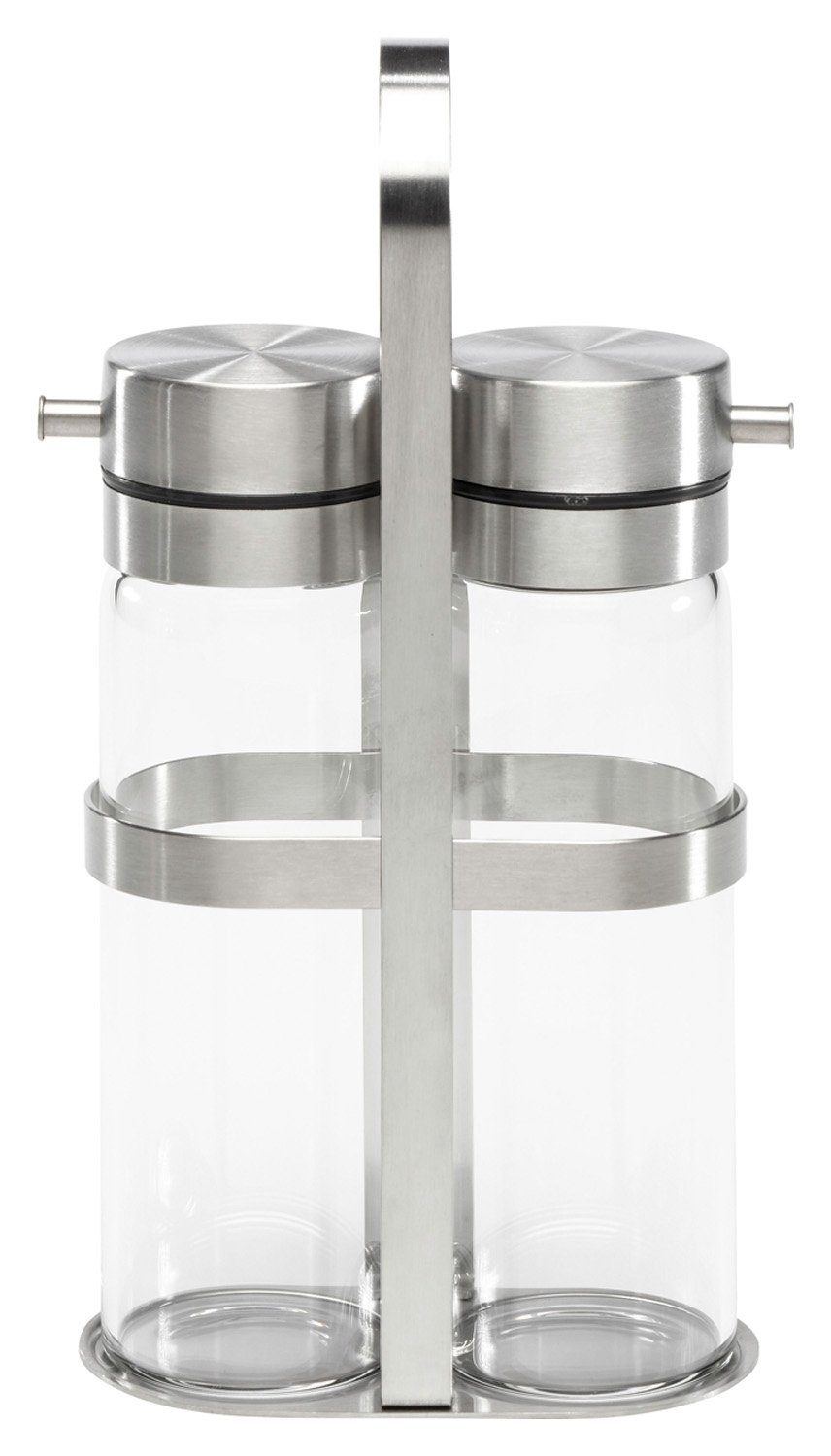 Lieferumfang | 3-teiliges Essig- und Ölflaschen-Set: 1 Gestell mit Halterungen und 2 Flaschen zur Aufbewahrung von Essig und Öl |