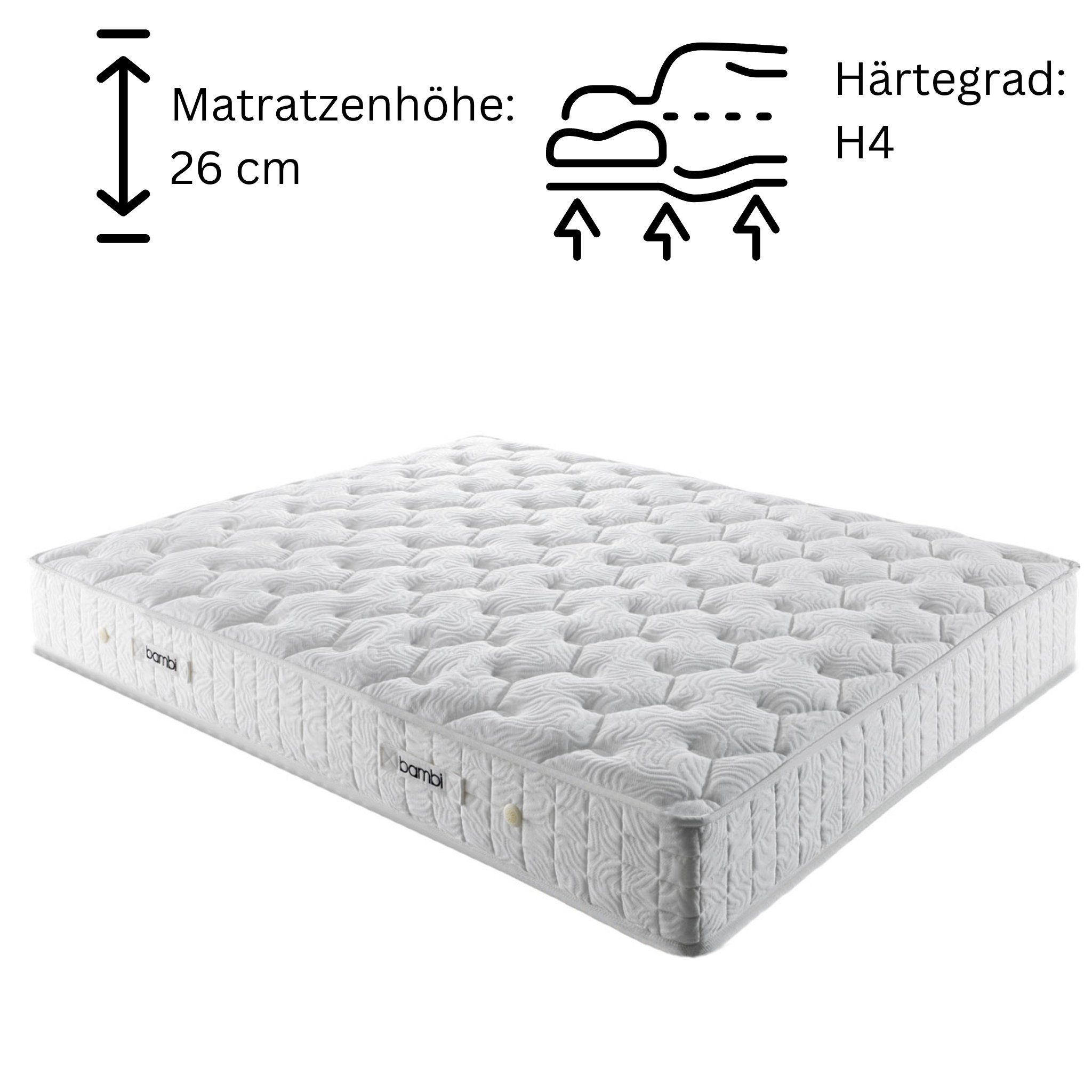 Das wärmebehandelte Bonel-Federsystem verhindert das Zusammenfallen in Bereichen, in denen das Körpergewicht konzentriert ist. Ideal für Menschen, die auf hartem oder mit telhartem Untergrund liegen möchten.