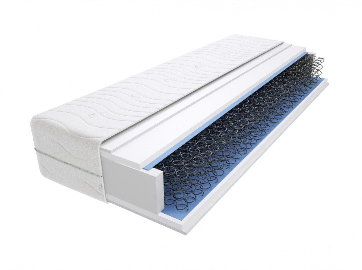 Bonellfedern - dieser Feder zeichnet sich durch die sogenannte Oberflächenelastizität. Was bedeutet das? Je größer der Druck auf die Matratze, desto größer der Widerstand der Federfläche. Je niedriger der Druck, desto geringer der Widerstand. Dadurch ist die Matratze aus Bonellfedern sehr flexibel und universell einsetzbar. Geeignet für Personen in einem großen Gewichtsbereich. Eine so konstruierte Matratze kann Menschen empfohlen werden, die ihren Nutzungskomfort, ihre Vielseitigkeit zu einem sehr günstigen Preis schätzen. Hochflexibler HR-Schaum - mit einer Dichte von 35 kg/m3 - dieser Schaum besteht aus einer Vielzahl von Luftblasen, sorgt für eine perfekte Körperanpassung, sehr guten Schlafkomfort und garantiert eine perfekte Belüftung der Matratze. Die erhöhte Dichte des HR-Schaums verlängert die Haltbarkeit der Matratze im Vergleich zum oft verwendeten T25-Polyurethanschaum erheblich. T25-Schaum - hochwertiger Polyurethanschaum sorgt für eine gute Durchblutung, anatomische Körperanpassung der Matratze. Es stärkt das Gefühl von Komfort und Benutzerfreundlichkeit. Polsterabstandshalter - verstärkt die Festigkeit der Matratze. Isoliert die Federform vom Schaum Gesteppter Bezug - mehrere Bezugsarten zur Auswahl, hypoallergenes, antiallergisches Material, mit einem L-förmigen Reißverschluss. Der Bezug ist abnehmbar und waschbar (Waschen mindestens alle sechs Monate empfohlen). Wichtig: Der Bezug kann je nach Размер eine andere Anordnung von Inschriften und Zeichen aufweisen. Das Bezugsmuster kann geringfügig von dem auf dem Foto gezeigten abweichen. Die in der Visualisierung verwendeten Farben Farben sind illustrativ und können von den tatsächlichen Farben abweichen, die Eigenschaften der einzelnen Ebenen bleiben jedoch erhalten.