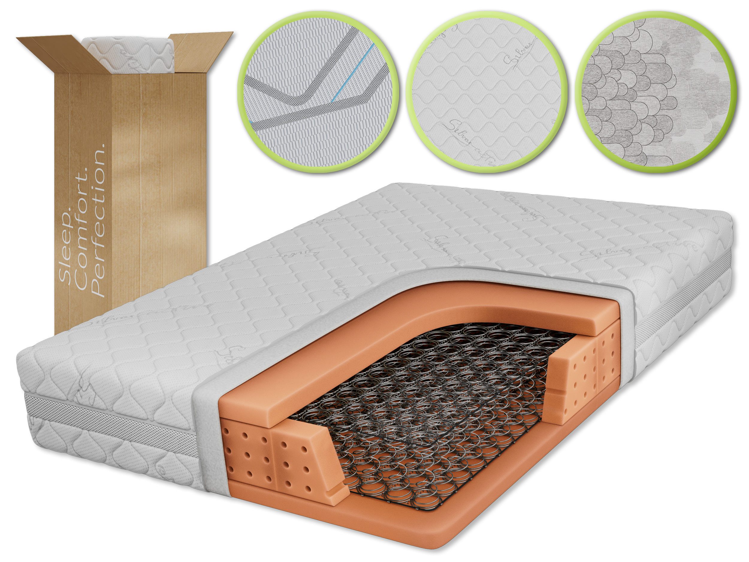 Der Sivo-Bezug (99 % Polyester, 1 % Polyamid) überzeugt mit technischer Mikrofaser und eingewebtem Silberfaden: wirkt antibakteriell, antistatisch und hemmt Hausstaubmilben – optimal für Всеrgiker und hygienebewusste Nutzer. Seine atmungsaktive Struktur unterstützt den Feuchtigkeitstransport und sorgt für ein frisches, trockenes Schlafklima. Der Bezug ist abnehmbar, maschinenwaschbar und pflegeleicht.