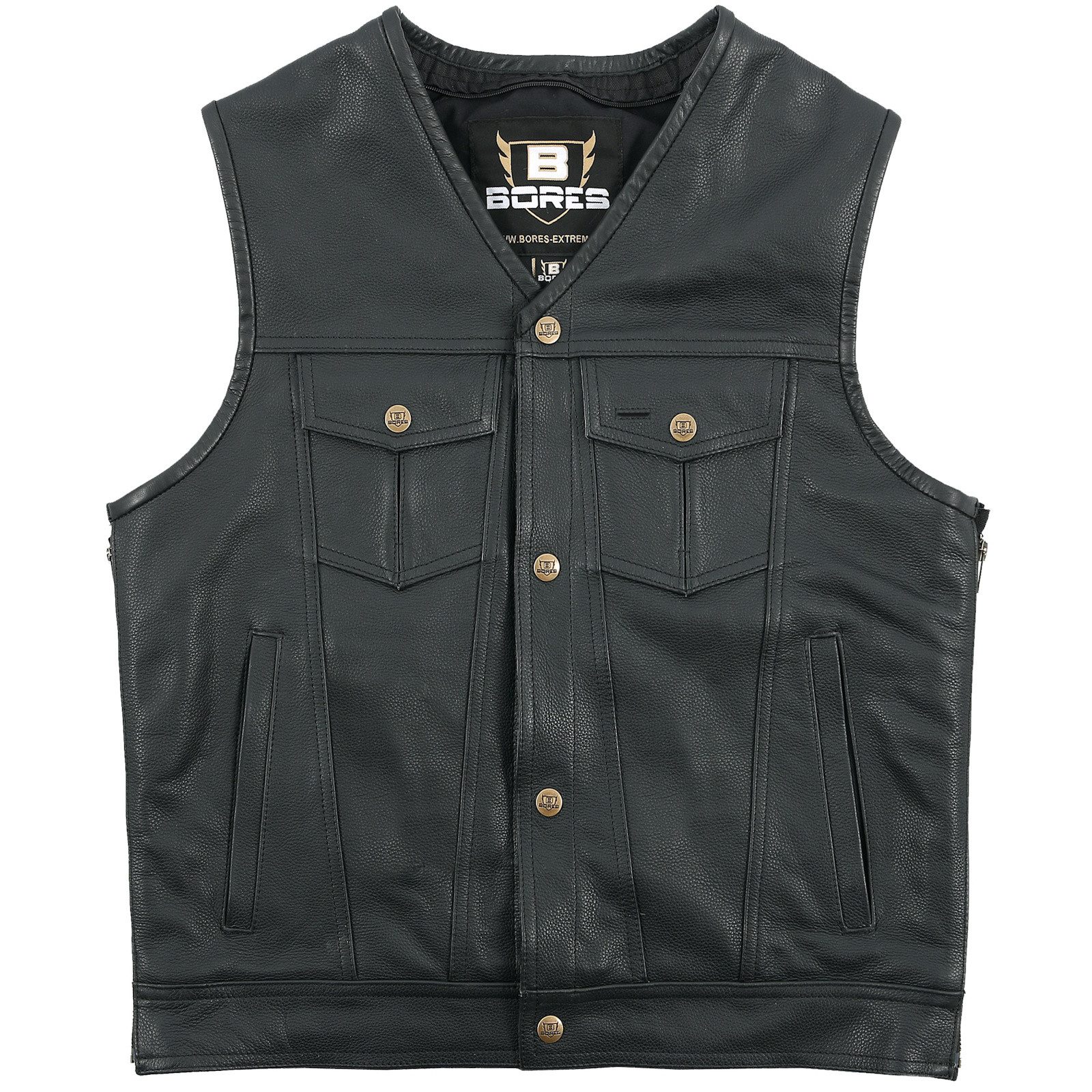 Die Clubweste im klassischen Stil einer Jeansjacke kommt mit einem praktischen Sonnenbrillenhalter an der Brusttasche daher. Das weiche Rindsleder sorgt für ein angenehmes Tragegefühl, während das Innenfutter für optimale Atmungsaktivität sorgt. Ein breites Rückenteil bietet ausreichend Platz für Club-Abzeichen.