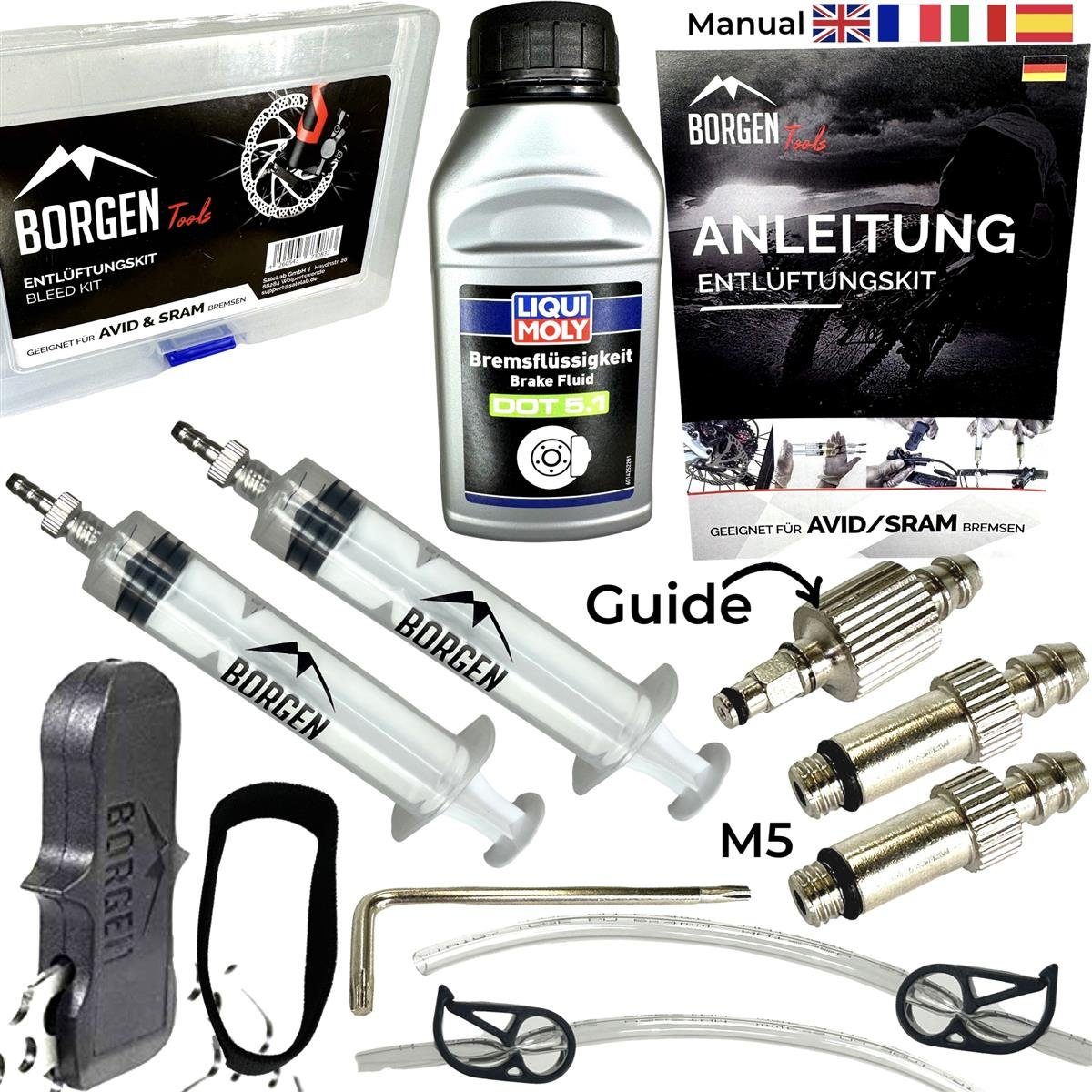 DURCHDACHTER INHALT – Dank des hochwertigen Inhalts, können mit unserem AVID & SRAM Entlüftungs Set alle AVID & SRAM Bremsen wie Sram Guide, Level und Avid Elixir, Juicy und Code