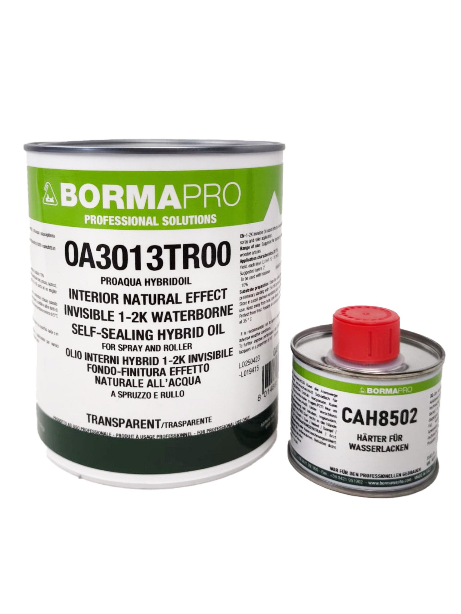 BormaPro OA3013TR00 ist ein professionelles 2-Komponenten Hybrid-Öl auf Wasserbasis, das speziell für die hochwertige Behandlung von Holzoberflächen im Innenbereich entwickelt wurde. In Kombination mit dem Härter CAH8502.01 entsteht ein leistungsstarkes System für maximale Beständigkeit und natürliche Optik.