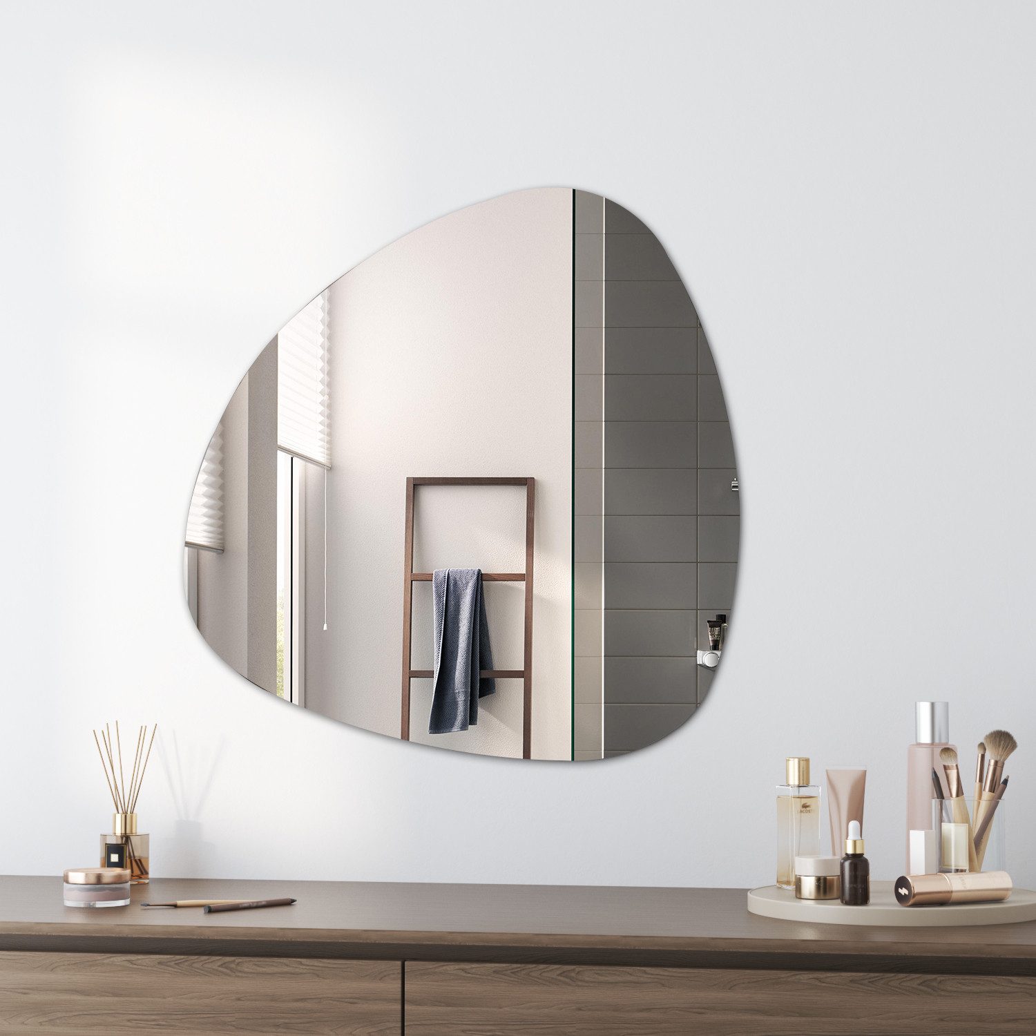 WDWRITTI Design Asymmetrischer Wandspiegel Stein 80x80cm - 5mm HD Glas