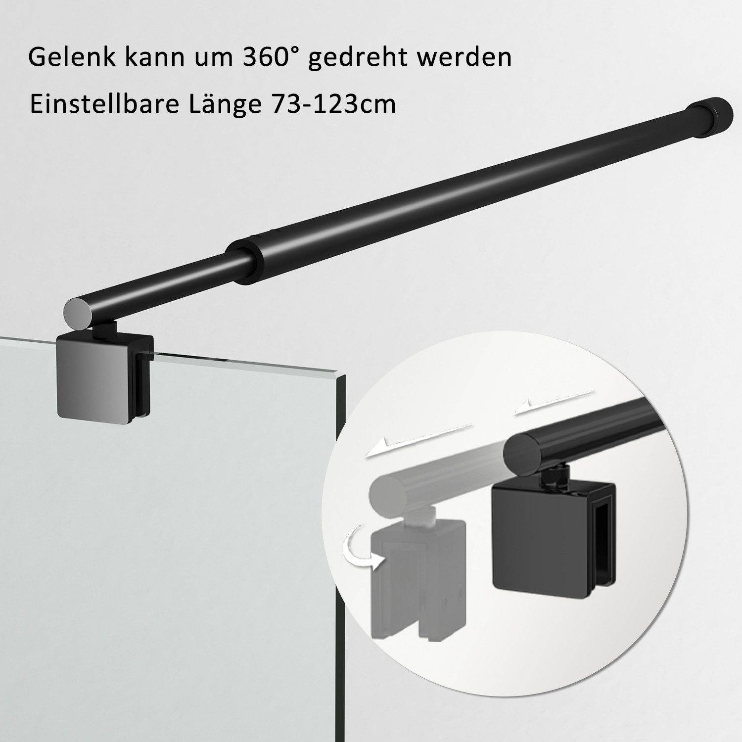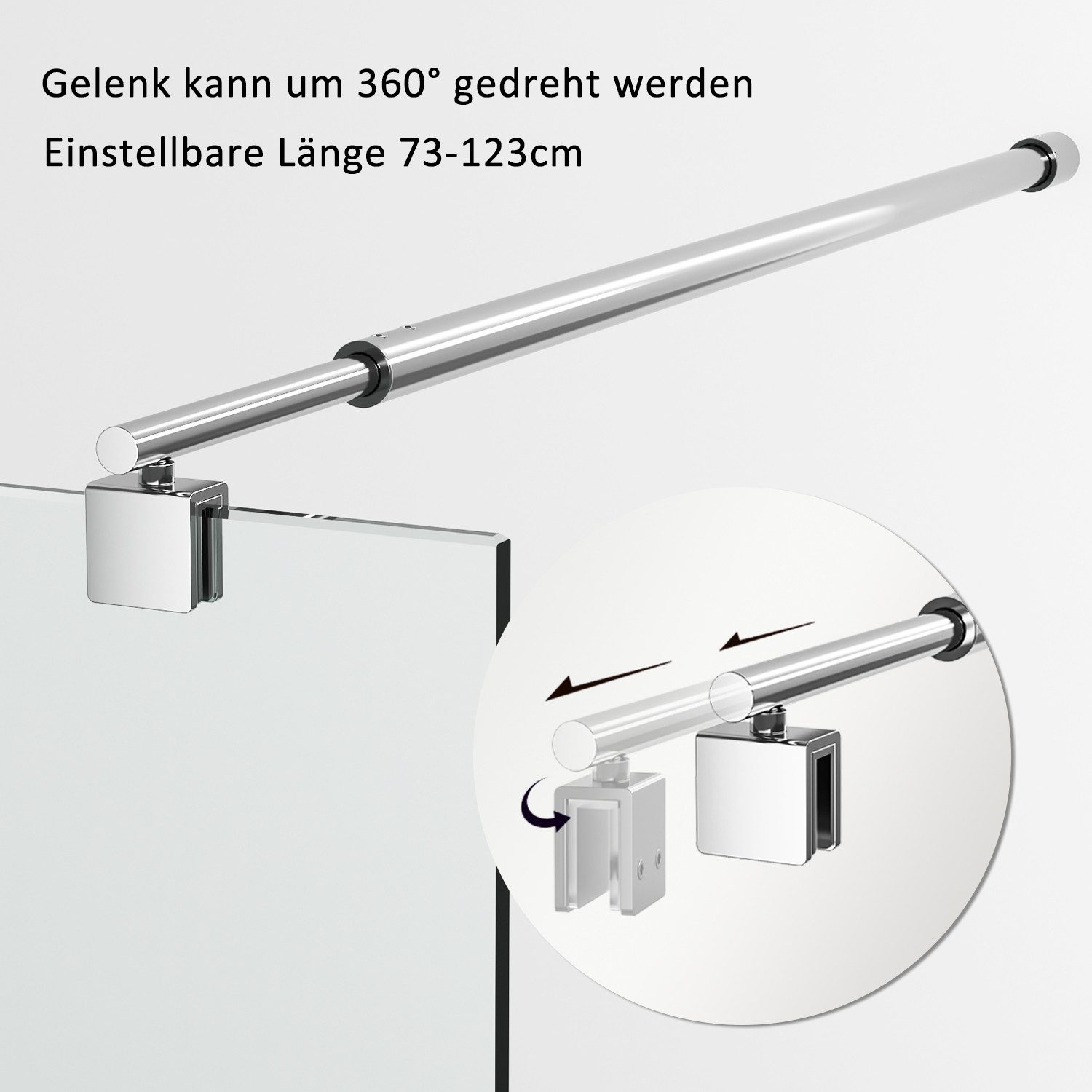 Der hochwertige Stabilisator ist universell für 6/8/10 mm Duschwände verwendbar und von 70-123 cm in der Длина verstellbar.
