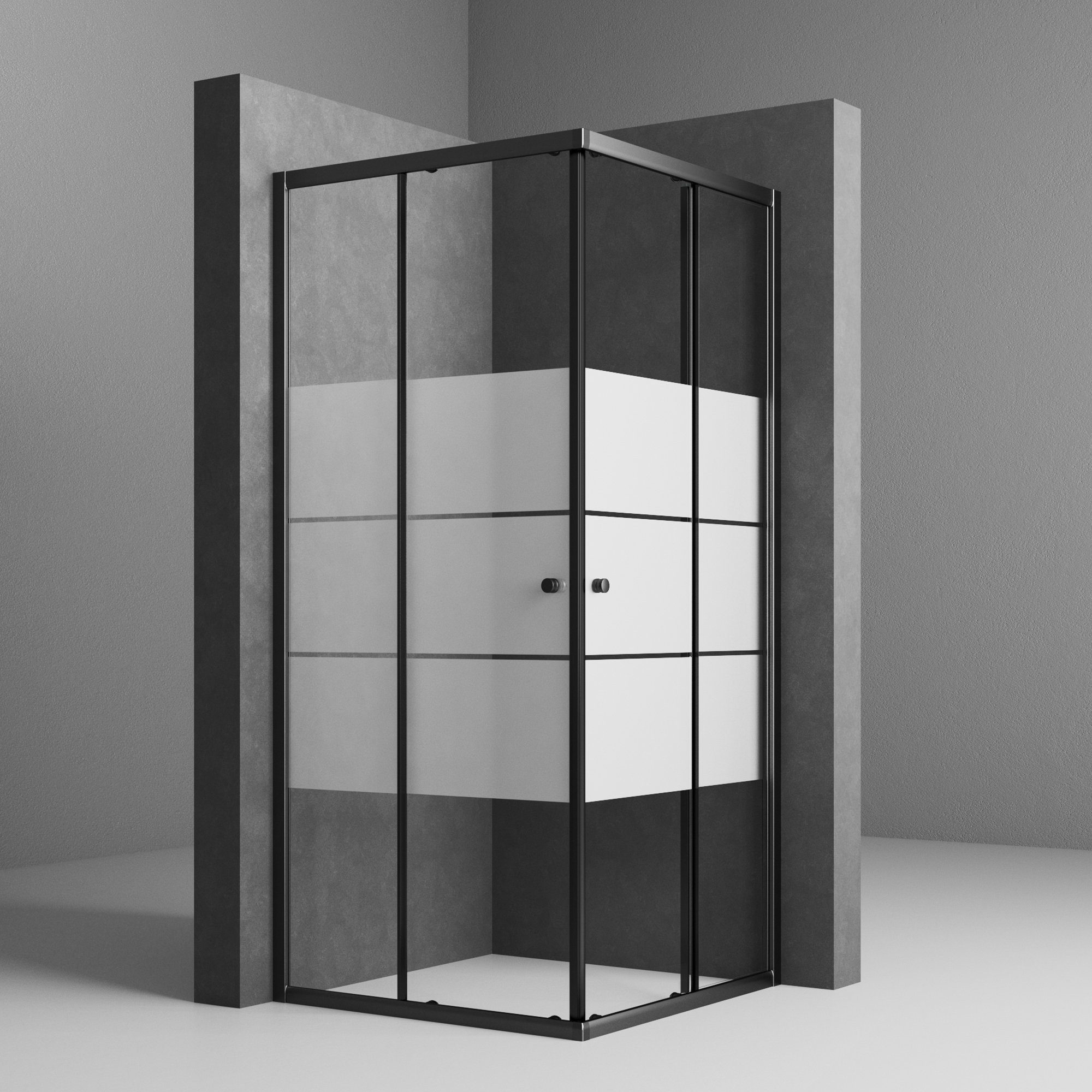 BOROMAL Duschkabine Schiebetür Schwarz 5mm ESG Milchglas H:185cm