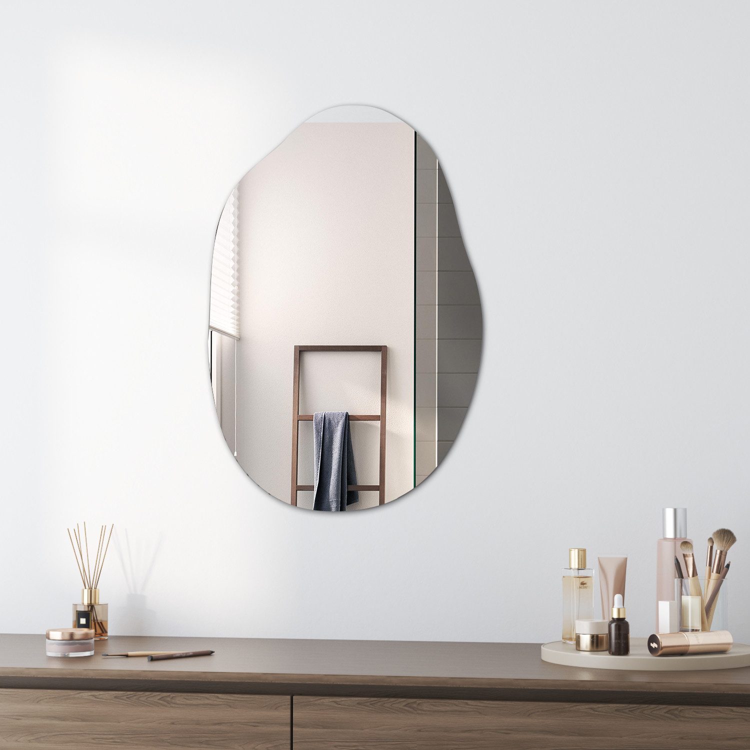 BOROMAL Design Asymmetrischer Wandspiegel Kieselstein 55x80cm - 5mm HD Glas