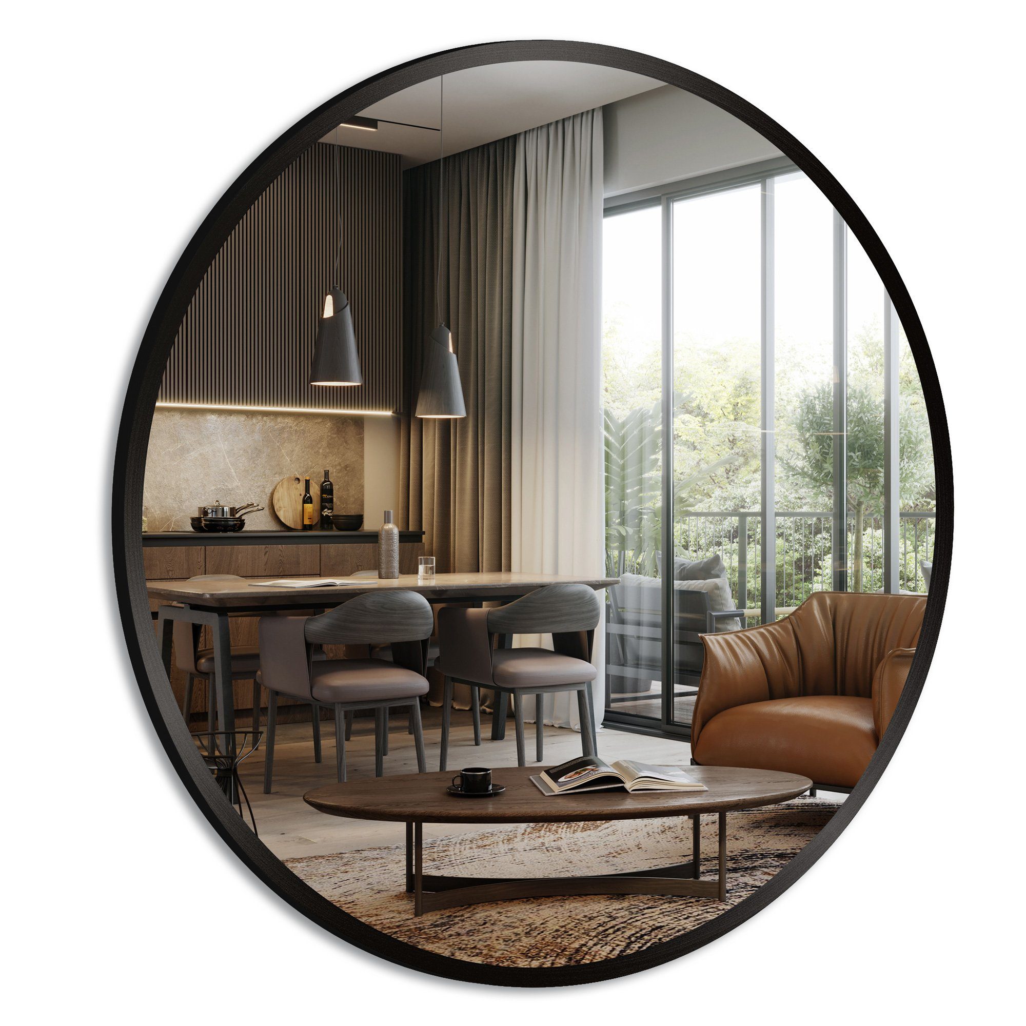BOROMAL Rundspiegel Gold Schwarz mit Aluminiumrahmen Ø50cm, Ø60cm