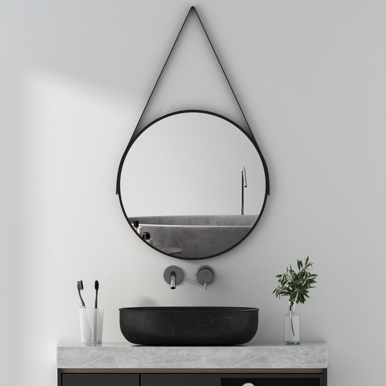 BOROMAL Wandspiegel Schwarz Rund mit Metall Rahmen Ø40/50/60cm