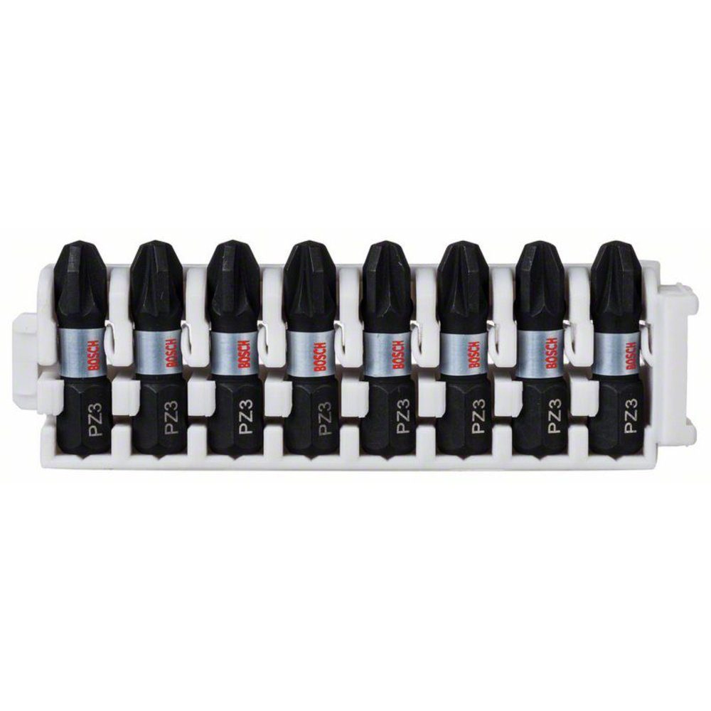 Das Impact Control Schrauberbit ist äußerst robust, ideal für schwere Arbeiten geeignet und hält selbst dem großen Drehmoment von Schlagschraubern stand. Die spezielle Torsionszone verleiht den Bits extreme Haltbarkeit für Dauerbelastung. S2-modifizierter Stahl und optimierter Wärmebehandlungsprozess verleihen höchste Haltbarkeit für Bestleistungen, selbst bei umfangreichen Montagen und schweren Industriearbeiten. Es besitzt einen Außensechskantschaft der Размер 1/4 Zoll zur Verwendung mit Bohrschraubern, Schraubendrehern und besonders mit Schlagschraubern. Das Schrauberbit ist Teil des Bosch Pick and Click-Systems, das individuell zusammenstellbare Zubehörsets für absolut flexible Bit-Менюe ermöglicht. Einrasteinschübe sichern einzeln gekaufte Bitpacks für eine individuelle Sammlung und den einfachen Austausch von alten Bitpacks. Die Bits werden in einem Kunststoffhalter geliefert, der einfach in die Pick and Click Leerboxen M und L einrastet und individuell zusammengestellte Bitsets ermöglicht. Das 36-teilige Pick and Click Impact Control Schrauberbitset enthält auch Steckschlüssel sowie den Impact Control-Universalhalter mit Standardmagnet und den Impact Control-Universal Holder Quick Release. Diese Halter sind ideal für besonders guten Halt der Bits bei allgemeinen Schraubarbeiten mit Elektrowerkzeugen geeignet. Die Quick-Change-Funktion ermöglicht hingegen schnelle und einfache Bitwechsel und einen kraftschlüssigen Sitz des Bits.