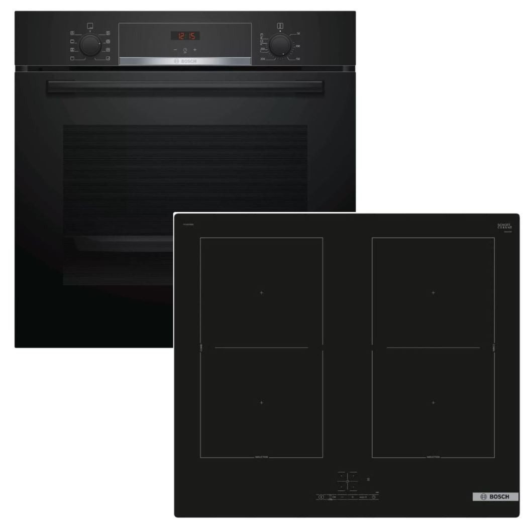 HERDSET BOSCH Backofen mit Induktionskochfeld 60 cm autark + Teleskopauszug