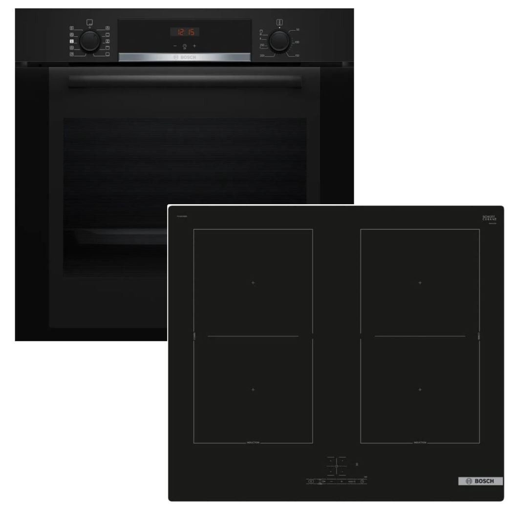 HERDSET BOSCH Backofen mit Induktionskochfeld 60 cm autark + Teleskopauszug