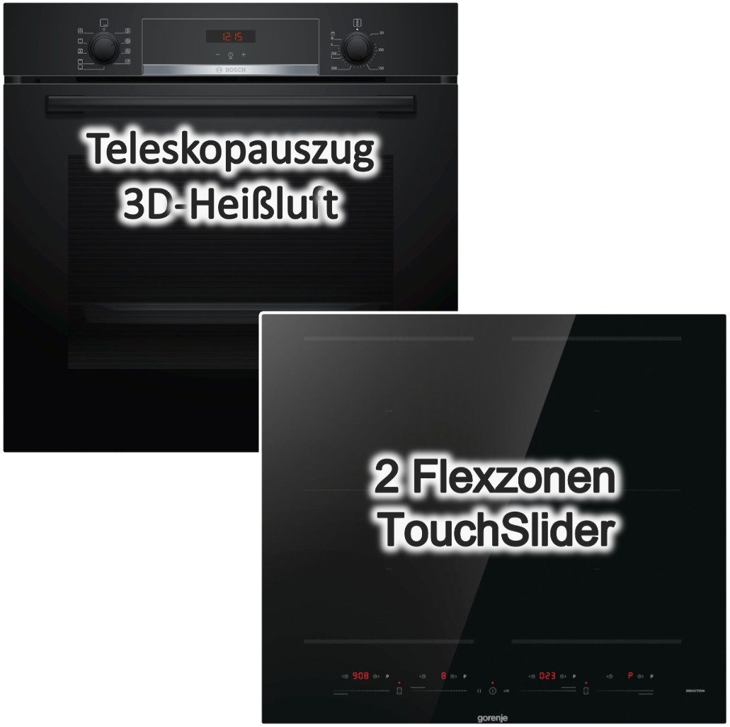 BOSCH Herdset Backofen Gorenje Induktionskochfeld 60cm autark schwarz 71L 3D Heißluft Teleskopauszug Double AreaFlex
