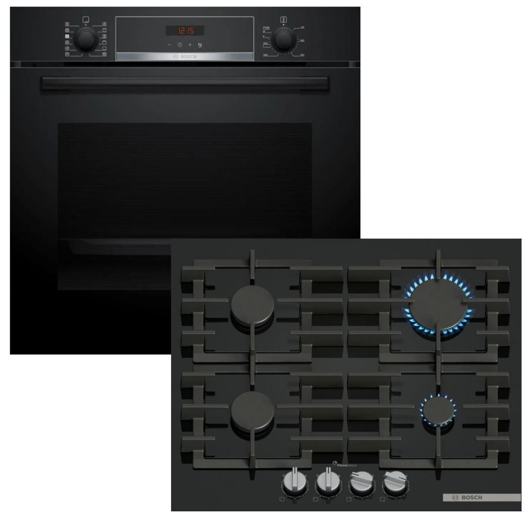 BACKOFENSET Bosch Backofen mit Gas-Kochfeld - Pyrolyse - Hydrolyse 60 cm autark