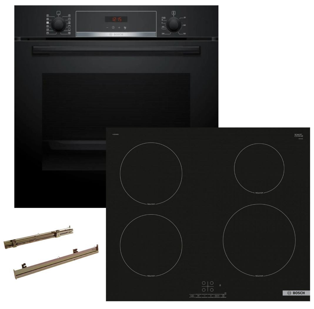Bosch Herdset mit Backofen & Induktionskochfeld – 60 cm autark mit Pyrolyse, 3D-Heißluft & Teleskopauszug