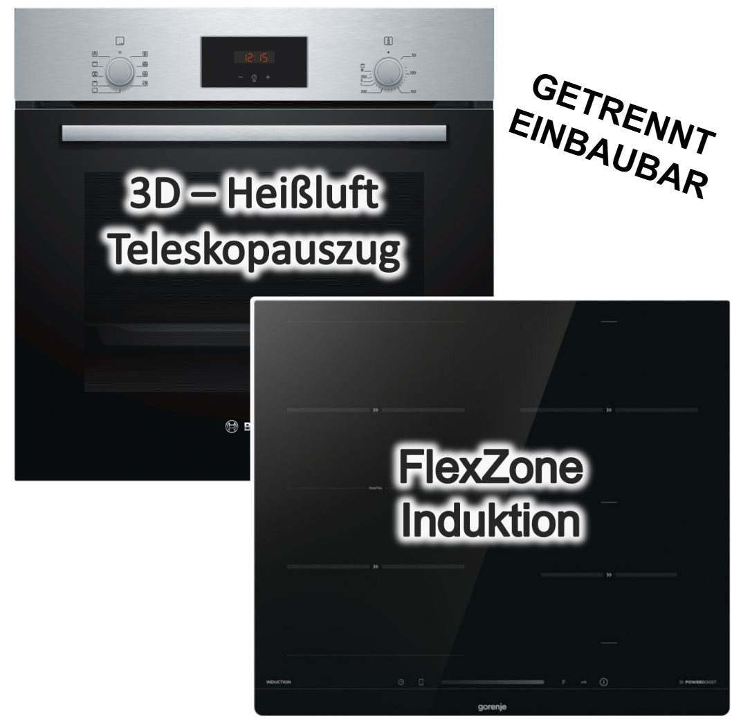 HERDSET BOSCH Backofen mit Gorenje Induktionskochfeld 60 cm + Teleskopauszug