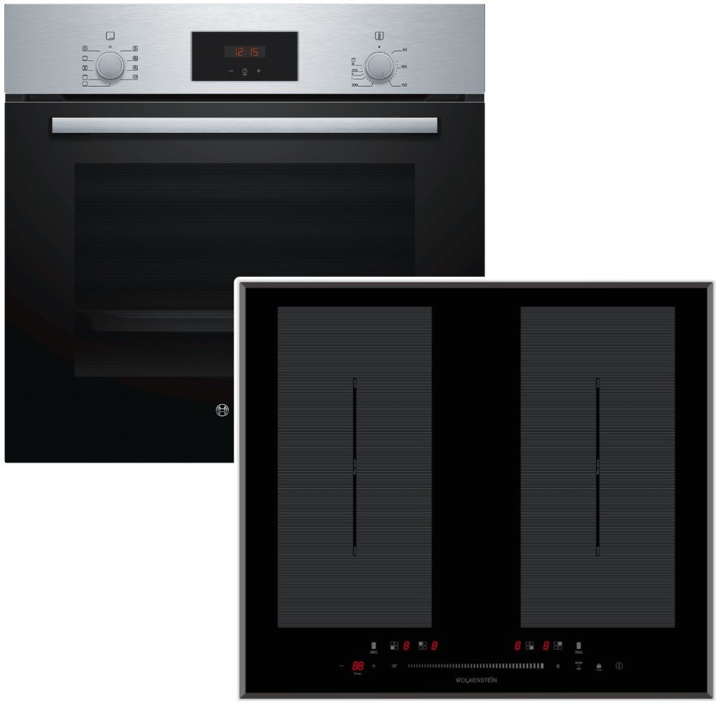 Dieses Set kombiniert den leistungsstarken BOSCH Einbaubackofen mit 3D-Heißluft und das Wolkenstein Induktionskochfeld – die perfekte Wahl für eine moderne und effiziente Küche.