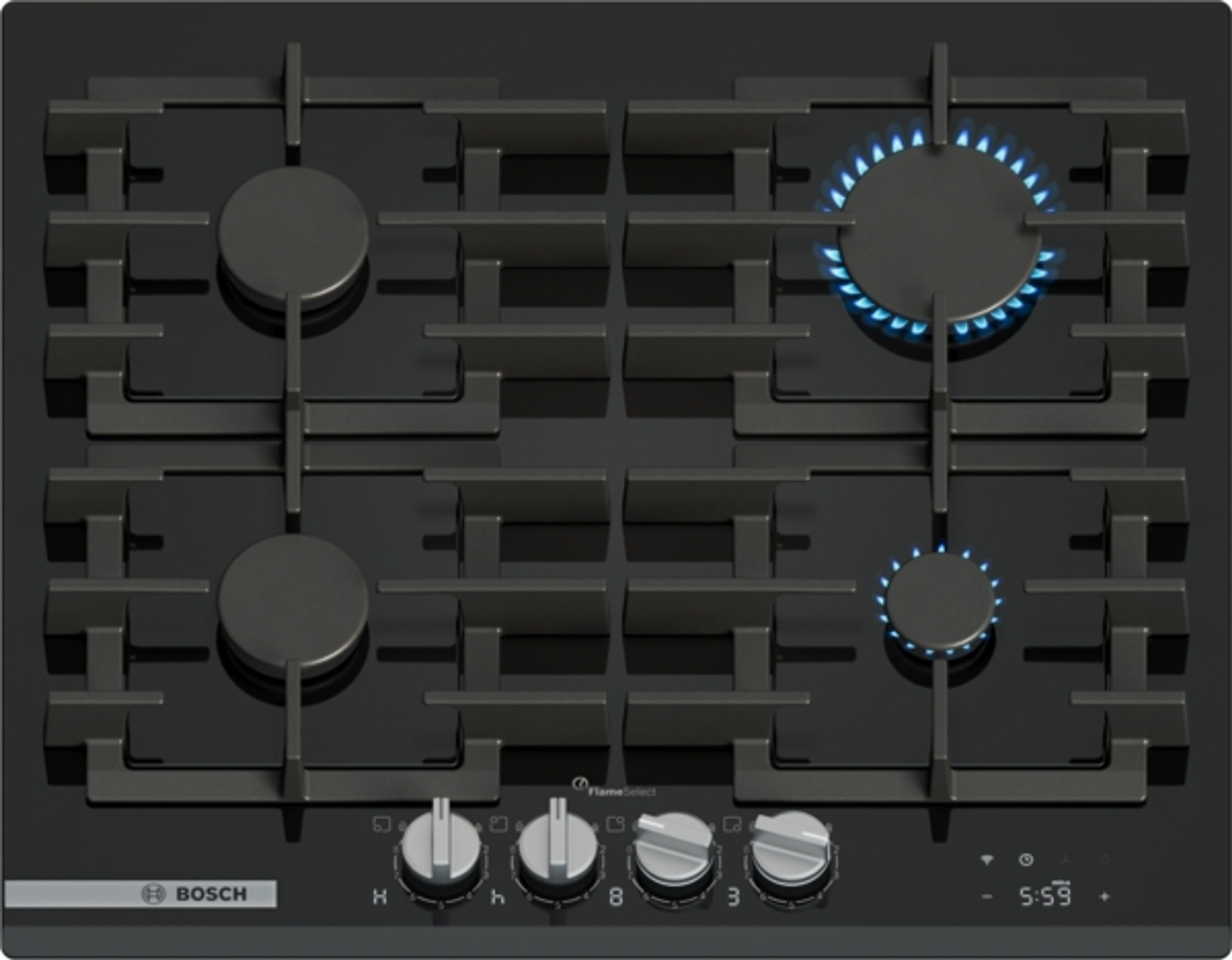 Top-Features | Gaskochfeld mit präziser Steuerung der Flamme, intelligenter Dunstabzugssteuerung und einfacher Reinigung dank abnehmbarer Metallknebel und spülmaschinengeeigneten Topfträgern aus Gusseisen.Kochfeldbasierte Haubensteuerung: bequeme Bedienung der Haube über dein Kochfeld (mit passender Haube) |
