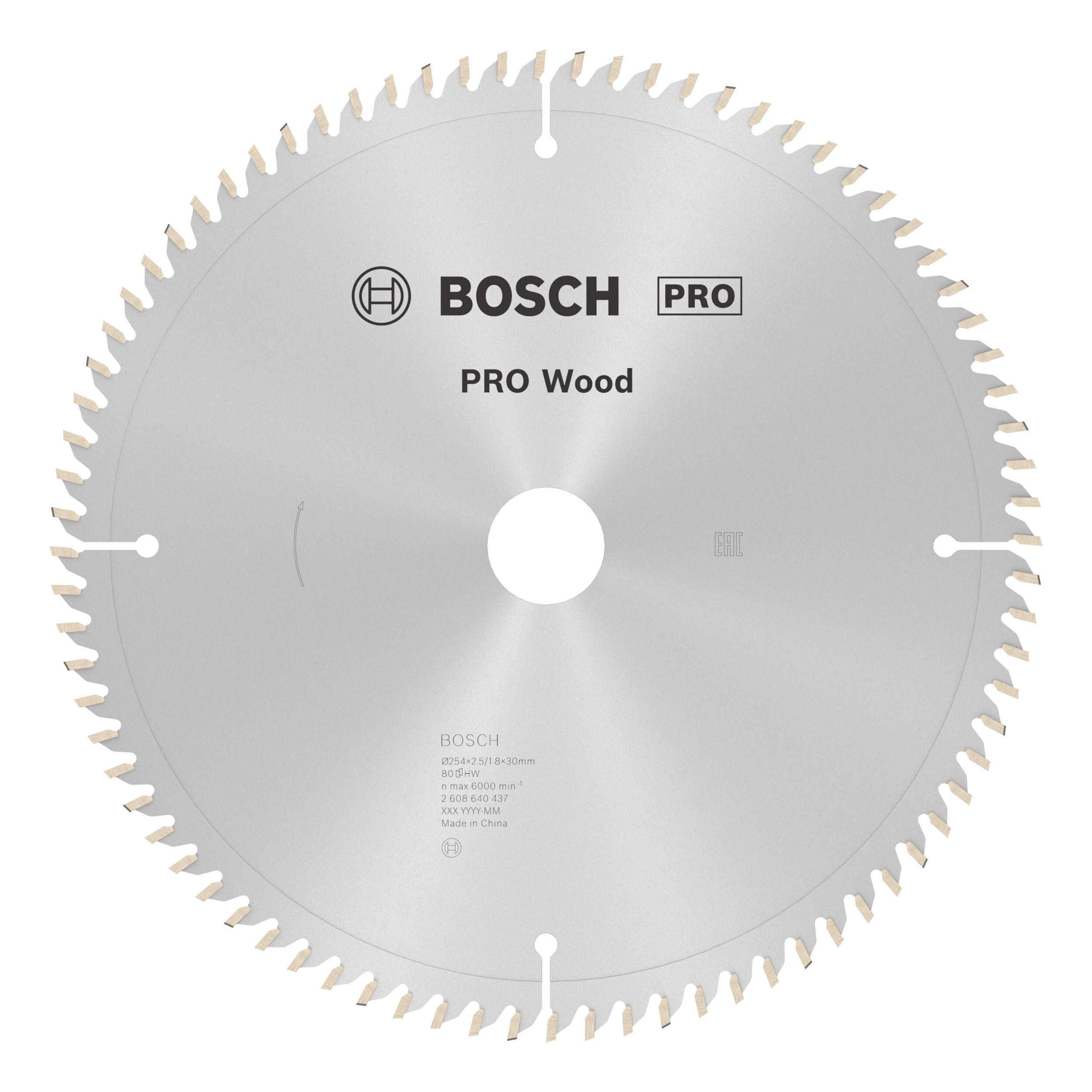 Bosch Zubehör Pro Wood Kreissägeblatt, 254 x 2,5 x 30 mm, 80 Zähne, für Netz-Kapp- und Gehrungssägen