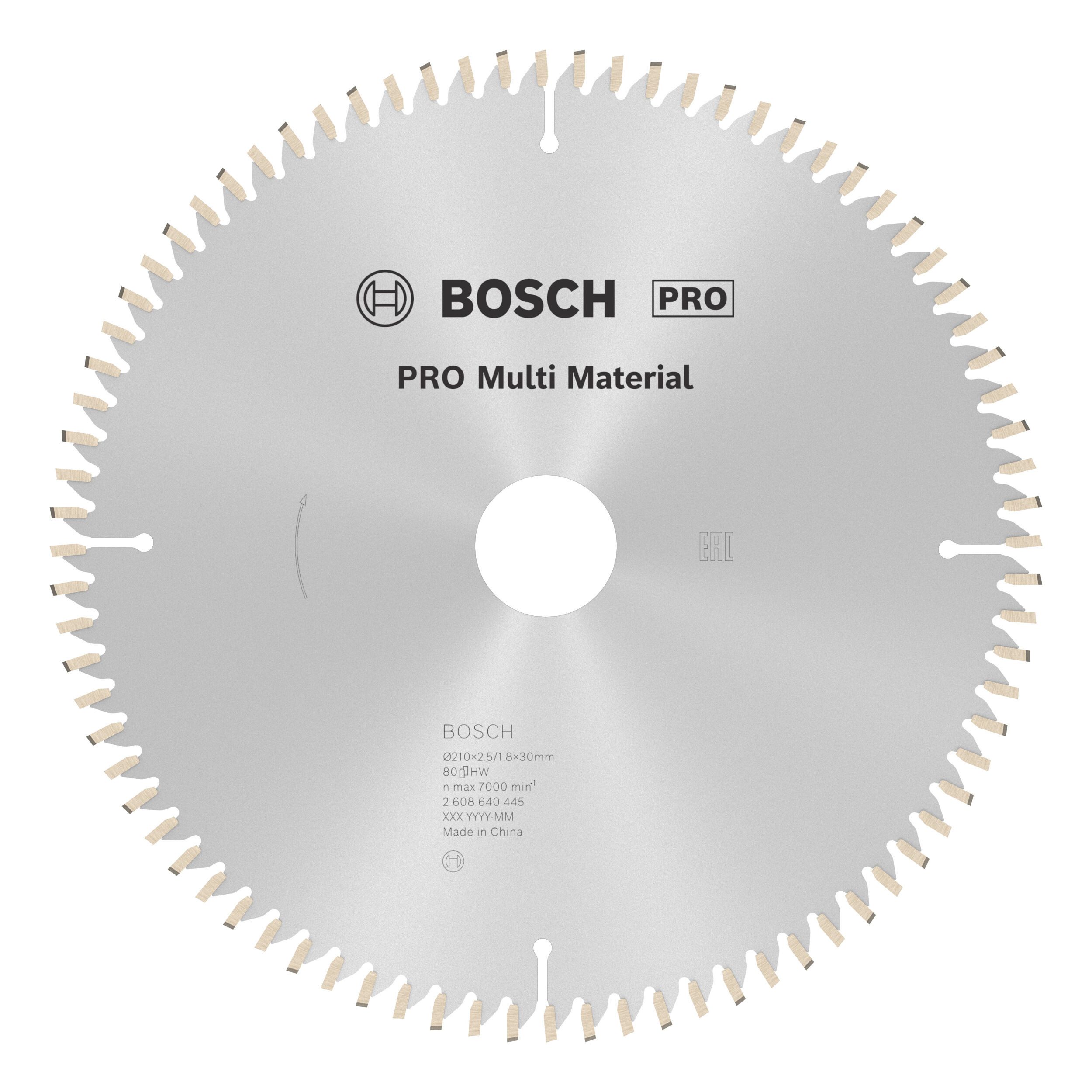 Bosch Zubehör Pro Multi Material Kreissägeblatt, 210 x 2,5 x 30 mm, 80 Zähne, für Netz-Kapp- und Gehrungssägen