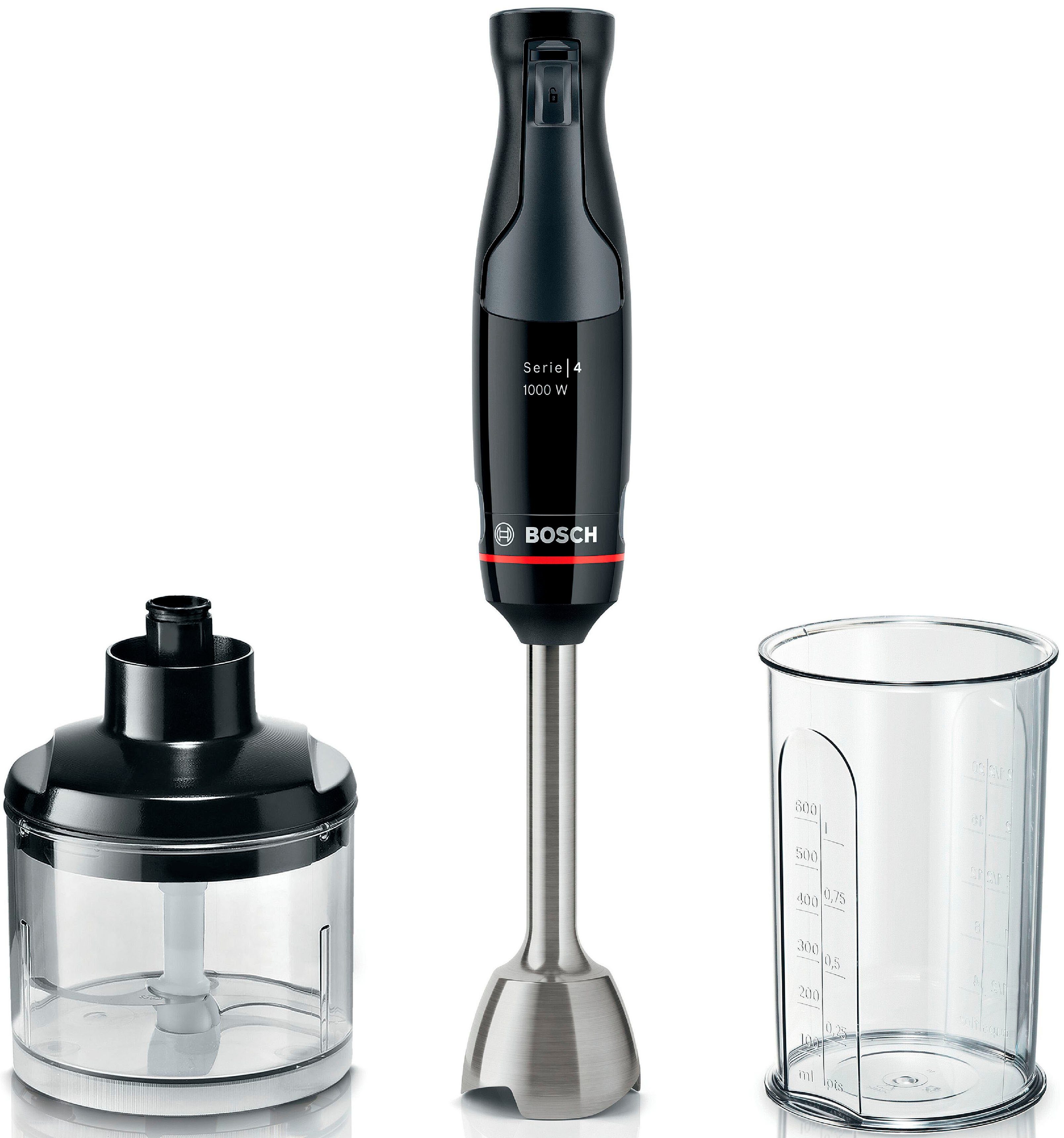 Впередe Vorteile | Bedienhebel mit Einschaltsperre für intuitives Entsperren und Bedienen mit einer Hand Dynamische Geschwindigkeitskontrolle - intutiv, einhändig bedienbar durch Druck auf den Bedienhebel Einfache Reinigung durch spülmaschinenfeste Teile Einfaches Tauschen der Zubehöre durch einen Klick-Mechanismus QuattroBlade System: 4 Klingen für perfekte Schnitte und feines Pürieren - mit AntiSplash Funktion Universalzerkleinerer für Kräuter, Nüsse, Hartkäse, Schinken etc. (500 ml Nutzvolumen) ergonomischer Griff mit Anti-Rutsch-Beschichtung robuster Edelstahl Mixfuß, Mix- und Messbecher |