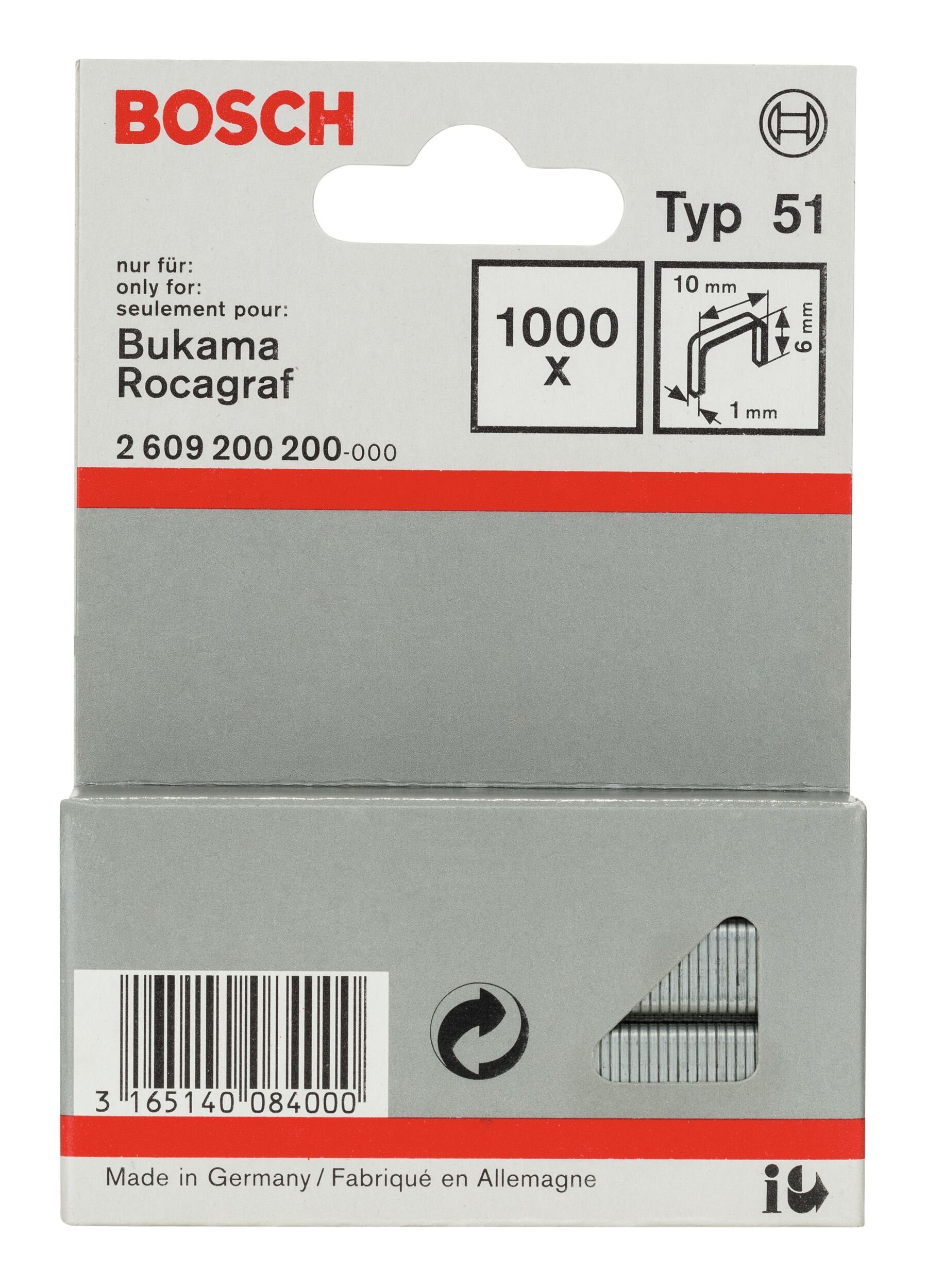 Bosch Zubehör Typ 51 Flachdrahtklammer - 1 x 6 x 10 mm - 1000er-Pack