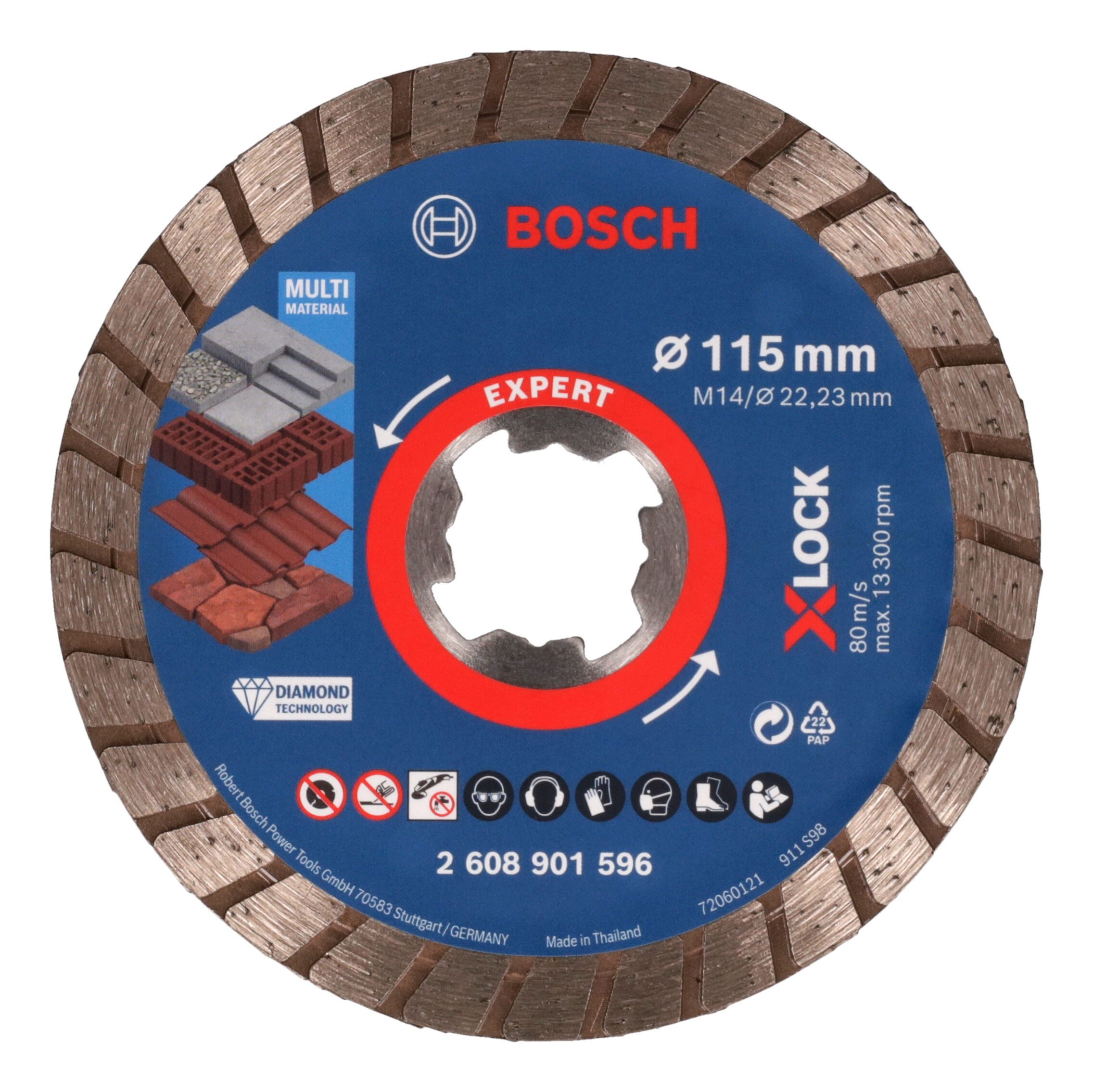 Bosch Zubehör Expert MultiMaterial X-LOCK Turbo Diamanttrennscheiben, 115 x 22,23 x 2,4 x 12 mm