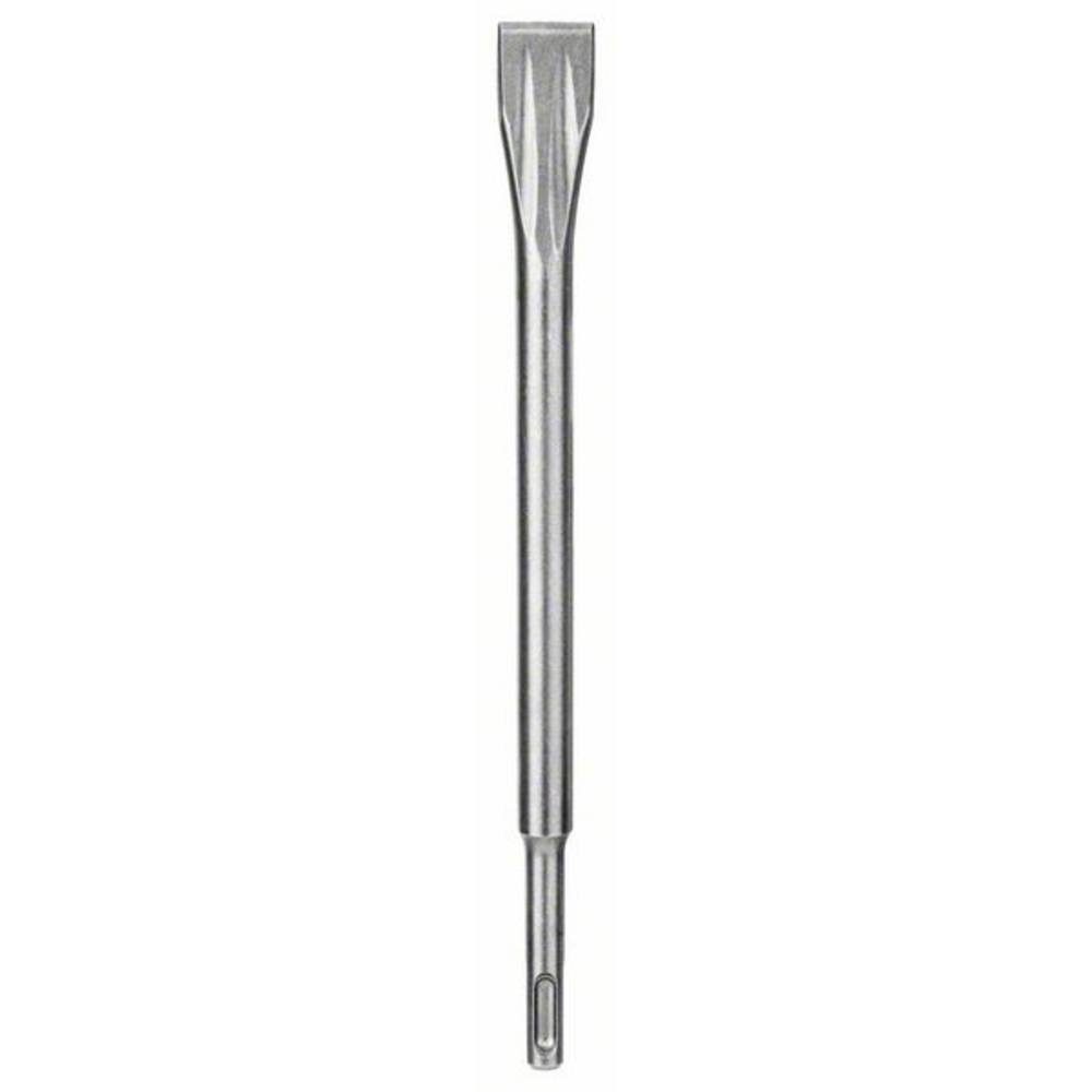 Der Flachmeißel mit SDS plus verklemmt weniger und kommt schneller voran als herkömmliche Flachmeißel. Die selbstnachschärfenden Verstärkungsrippen erzeugen im Material nicht nur seitliche sondern auch senkrechte Risse. Dies bewirkt einen höheren Materialabtrag und verhindert das Verklemmen des Meißels. Auch ermöglicht die Vipernzahnung der Schneidekante schnelleres Vorankommen. Der Meißel ist bestimmt für abschließende Anpassungsarbeiten in Beton und Baustein, für das Einreißen oder Entfernen von Wänden sowie für das Wiederherstellen von Fugen und das Freilegen von Armierungen. Er ist kompatibel mit dem Aufnahmesystem SDS plus. Jedoch kann er auch direkt mit Hämmern des Typs mit SDS plus mit Drehstopp verwendet werden. Der Flachmeißel mit SDS plus besitzt eine 30 % höhere Lebensdauer und eine 15 % höhere Materialabtragsrate als herkömmliche Meißel. Gesamtlänge mm: 250, Meißelschneide mm: 20.