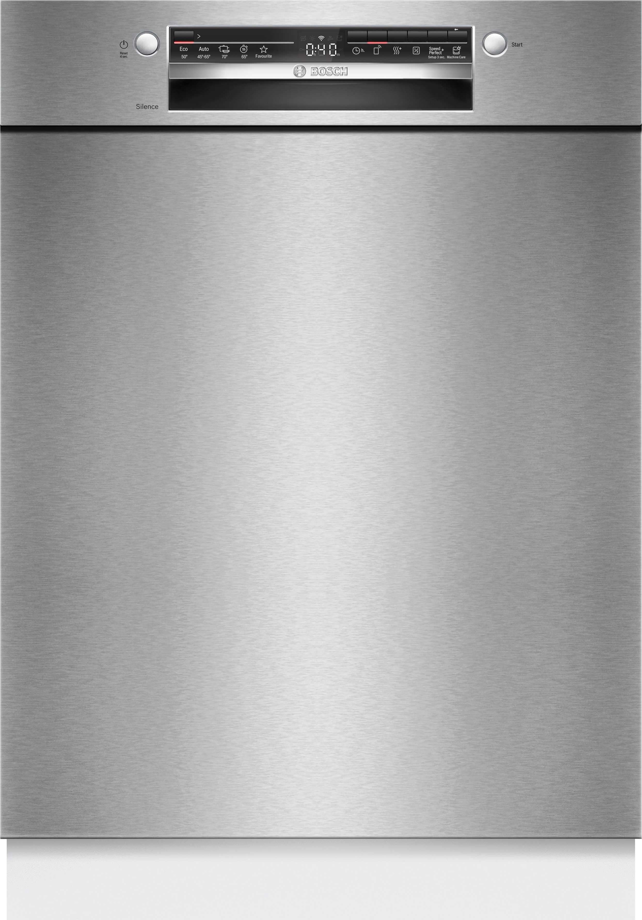 Bei dem SMU2HVS06E handelt es sich um einen Unterbaugeschirrspüler von BOSCH mit den Maßen 59,8 x 81,5-87,5 x 57,3 cm (BxHxT). Mit einem Fassungsvermögen von 14 Maßgedecken ist das Gerät ausgezeichnet geeignet für Haushalte ab vier Personen. Mit der Energieeffizienz-Klassifizierung C (Skala: A bis G) . Mit der Startzeitvorwahl lässt sich vorab festlegen, wann das ausgewählte Programm loslegen soll. Durch den rostfreien Kunststoffboden des Geräts ist beim Nachfüllen von Salz kein Trichter mehr erforderlich. Glänzend sauberes Besteck und Geschirr sowie perfektionierte Spülvorgänge sind nur zwei Pluspunkte des Geräts. Verschiedene Spül-Modi und seine Zuverlässigkeit überzeugen.