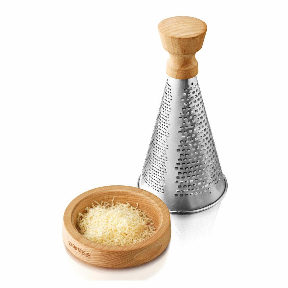 Mit dieser Tischreibe machen Sie mühelos herrlich frische, schmackhafte Schnipsel aus halbfesten Käse bis Extra-Hartkäse, die Sie über Ihren Salat oder Ihr Risotto streuen. Diese geschmackvoll entworfene Tischreibe aus der Life Kollektion stellen Sie mit dem Boden auf den Tisch und halten Sie mit einer Hand auf der Oberseite fest. Mit der freien Hand reiben Sie Käse längs des Reibeblatts. Auf diese Art haben Sie einfach eine gute Menge frisch geriebenen Käse für Pasta, Pizza oder Suppe. Der Vorteil selbst Käse zu reiben ist der Sauerstoff, mit dem der frisch geriebene Käse in Berührung kommt. Der sorgt nämlich für die spontane Reifung des Käses, dadurch ist der Geschmack voller und frischer als von verpacktem Käse. Daher reibt der Käseliebhaber selbst Käse. Diese Reibe mit Eichenholzspitze und Kappe ist sehr gebrauchsfreundlich und hat verschiedene Stufen von klein gehobelt bis grob gehobelt.