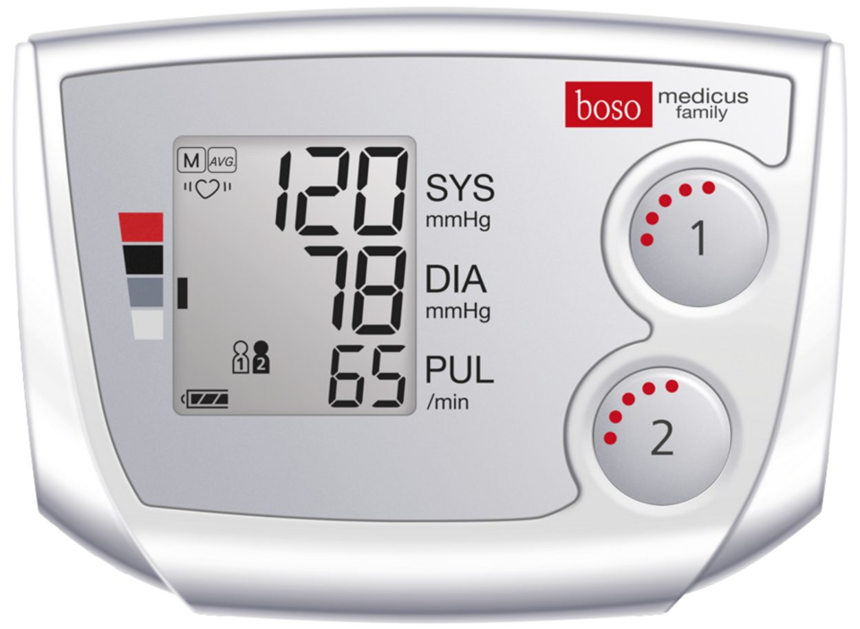 Lieferumfang | Blutdruckmessgerät boso medicus family Universalmanschette (22-42 cm) Batterien Blutdruckpass Reise-Etui |