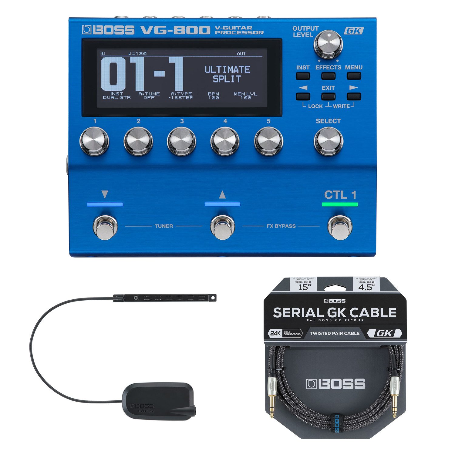Lieferumfang | Effektgerät, Netzteil, Tonabnehmer, Kabel |