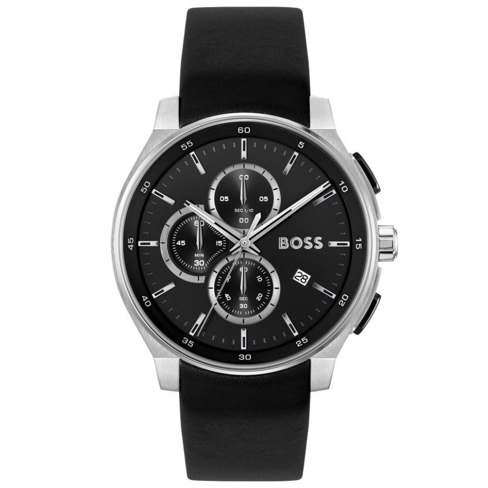 Dieses atemberaubende Schmuckstück ist die perfekte Kombination aus modernem Design und maskuliner Eleganz. Mit ihrem robusten Edelstahlgehäuse und dem tiefschwarzen Zifferblatt strahlt die BOSS Herrenuhr Peak 2.0 Chronograph Schwarz 1514188 eine kraftvolle und markante Ausstrahlung aus. Die klaren, silberfarbenen Stundenmarkierungen und Zeiger bieten exzellente Ablesbarkeit und verleihen diesem Begleiter einen sportlich-eleganten Look, der sich für jede Gelegenheit eignet. Die Chronographen-Funktion der BOSS Herrenuhr Peak 2.0 Chronograph Schwarz 1514188 ermöglicht eine präzise Zeitmessung und macht dieses Accessoire zum idealen Begleiter für den aktiven Lebensstil. Das übersichtliche Zifferblatt verfügt über zusätzliche Anzeigen und ein dezentes Datumsfenster, die das funktionale Design unterstreichen. Das schwarze Lederarmband sorgt für hohen Tragekomfort und ergänzt das edle Erscheinungsbild die